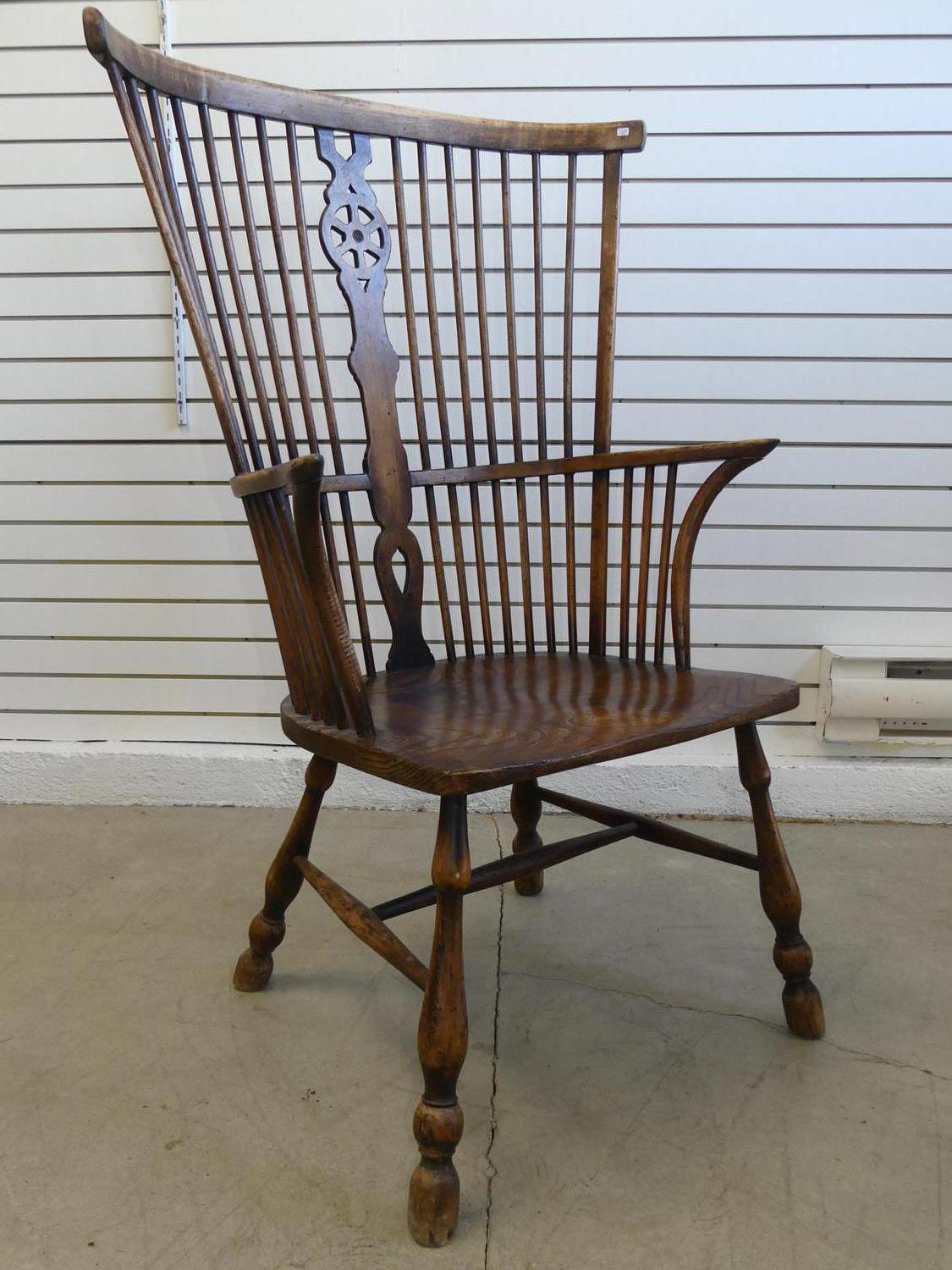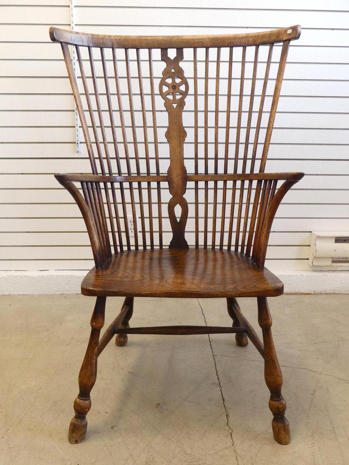 windsor style elm armchair, english 20th century, 46" x 26" x 23"