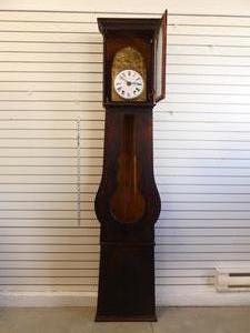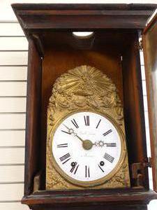 french longcase clock with enamel dial signed galle frères à rennes, early 19th century with later case