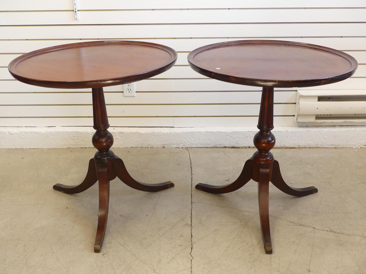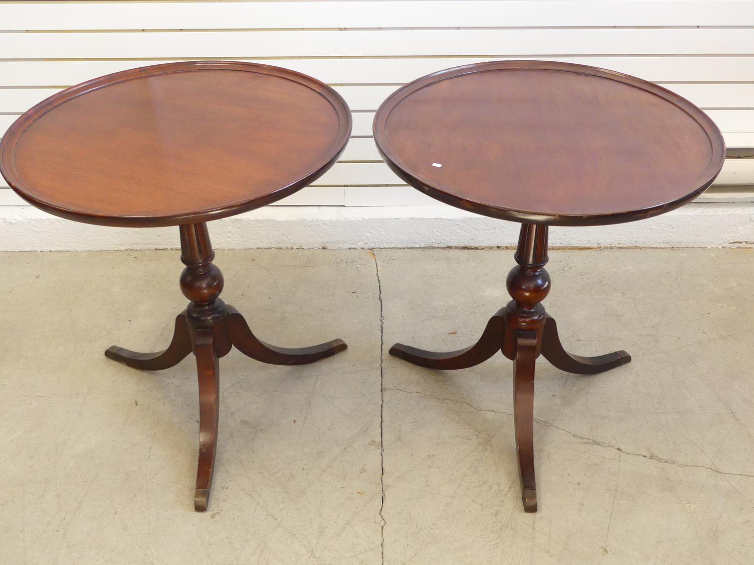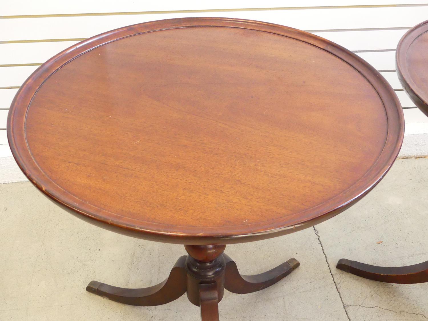 pair of mahogany finish pedestal tables, deilcraft c.1960, 27 1/2" x 26"