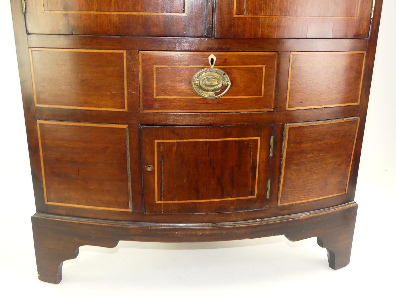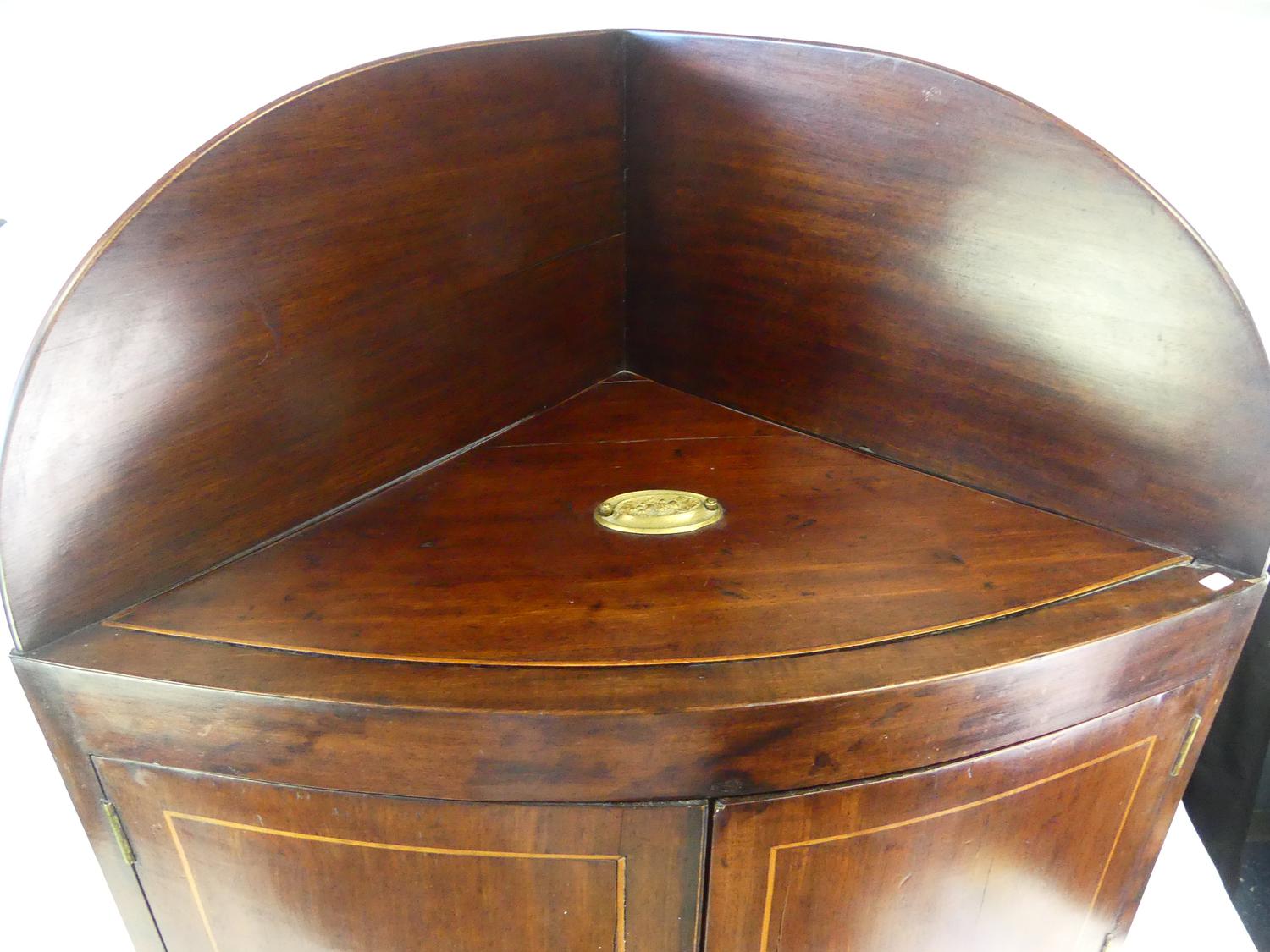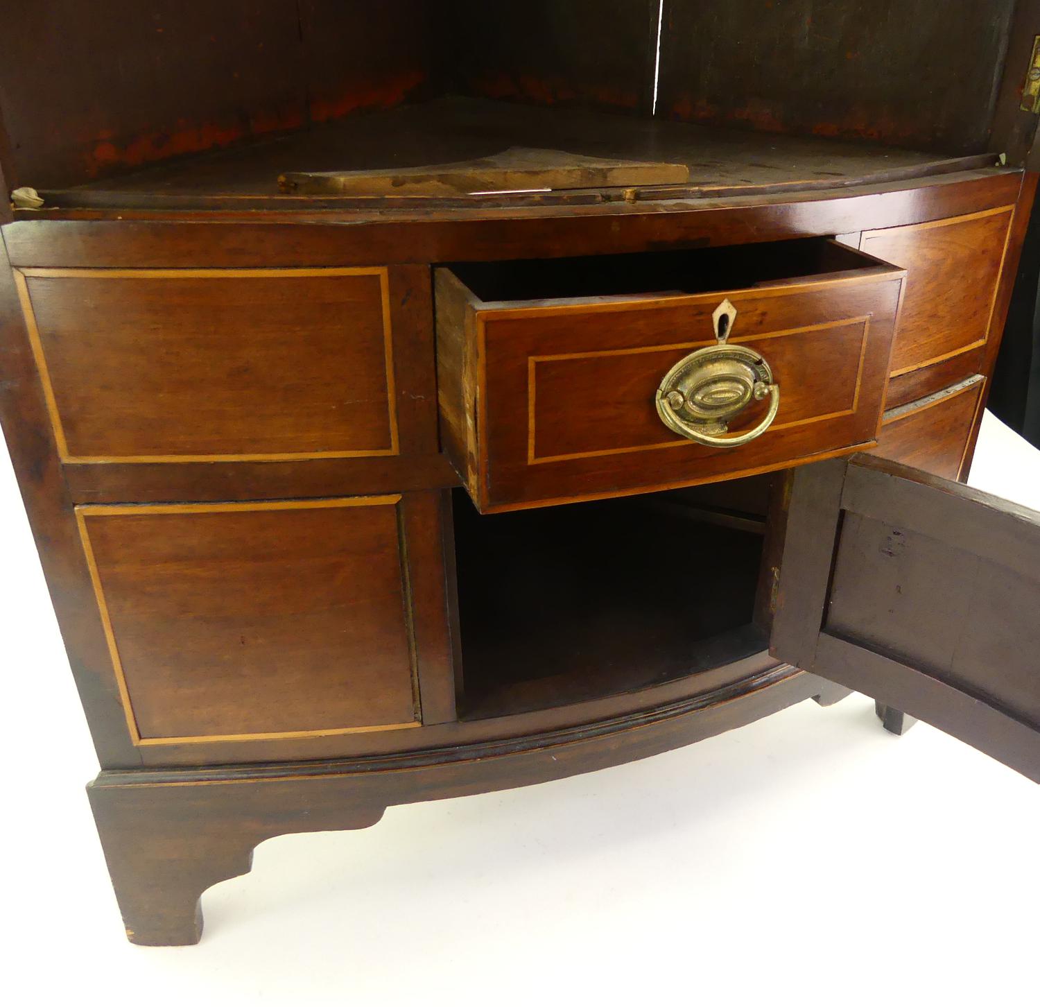 george iii inlaid mahogany corner cabinet, england, early 19th century, 43" x 26" x 18 1/2"