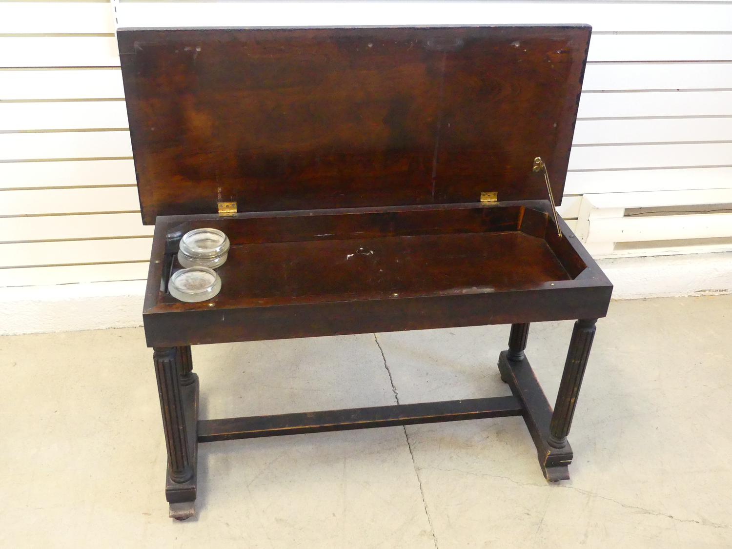 piano bench with fluted legs and lift top, c.1900, 21 1/2" x 36 1/2" x 16"