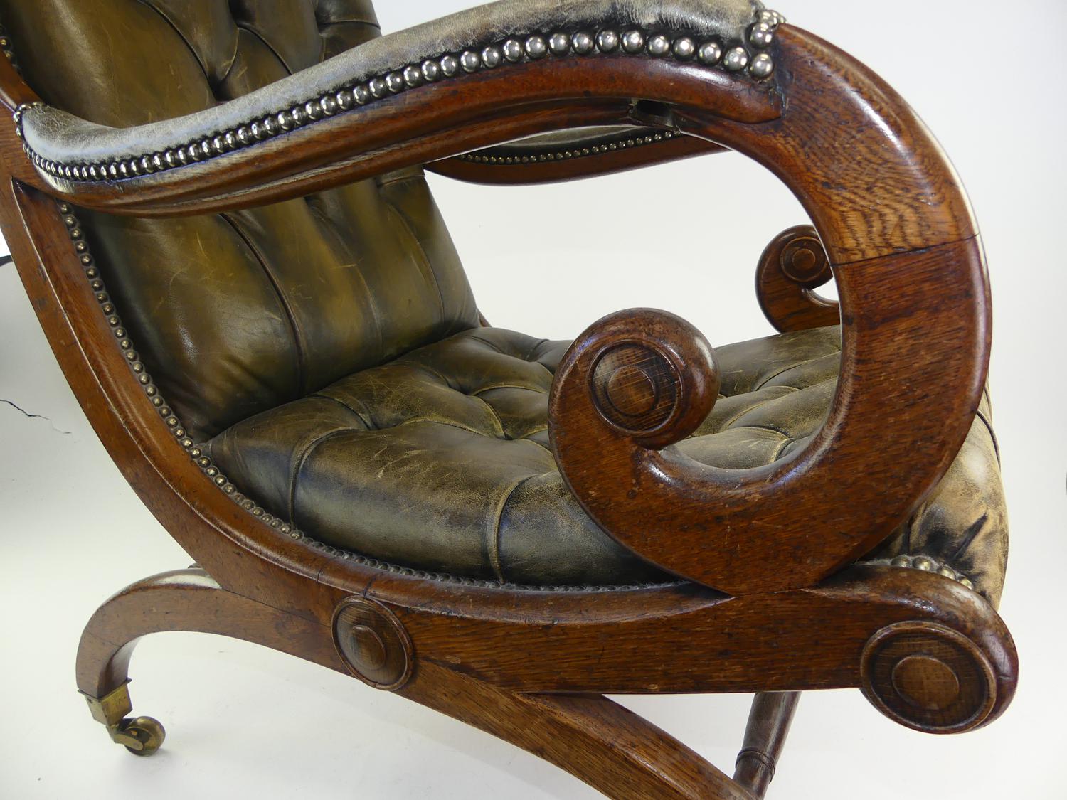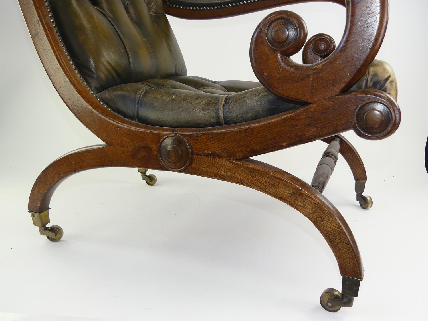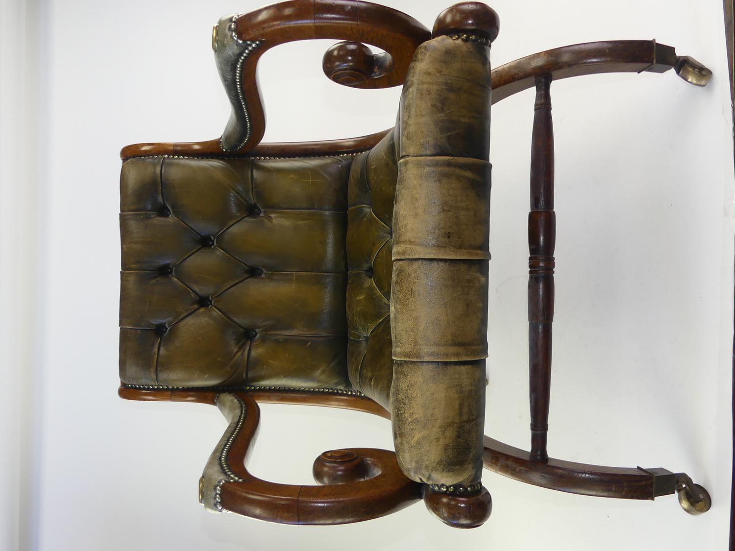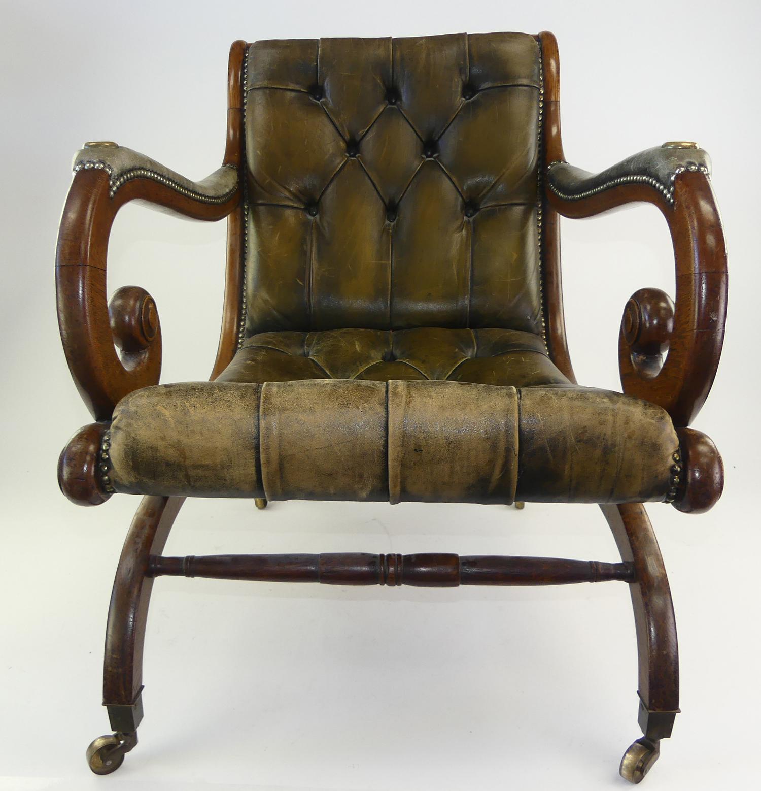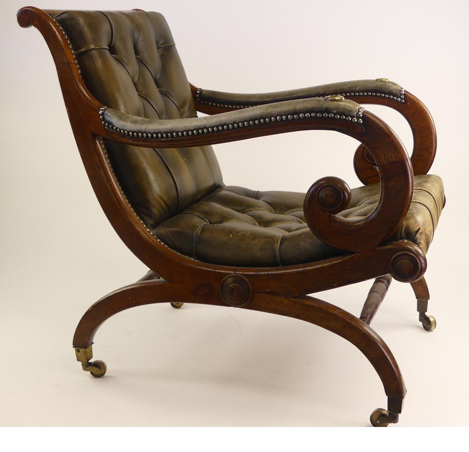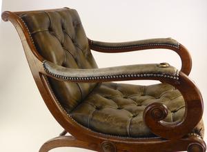 regency mahogany leather upholstered reading chair, england 1830, 32" x 30" x 24"