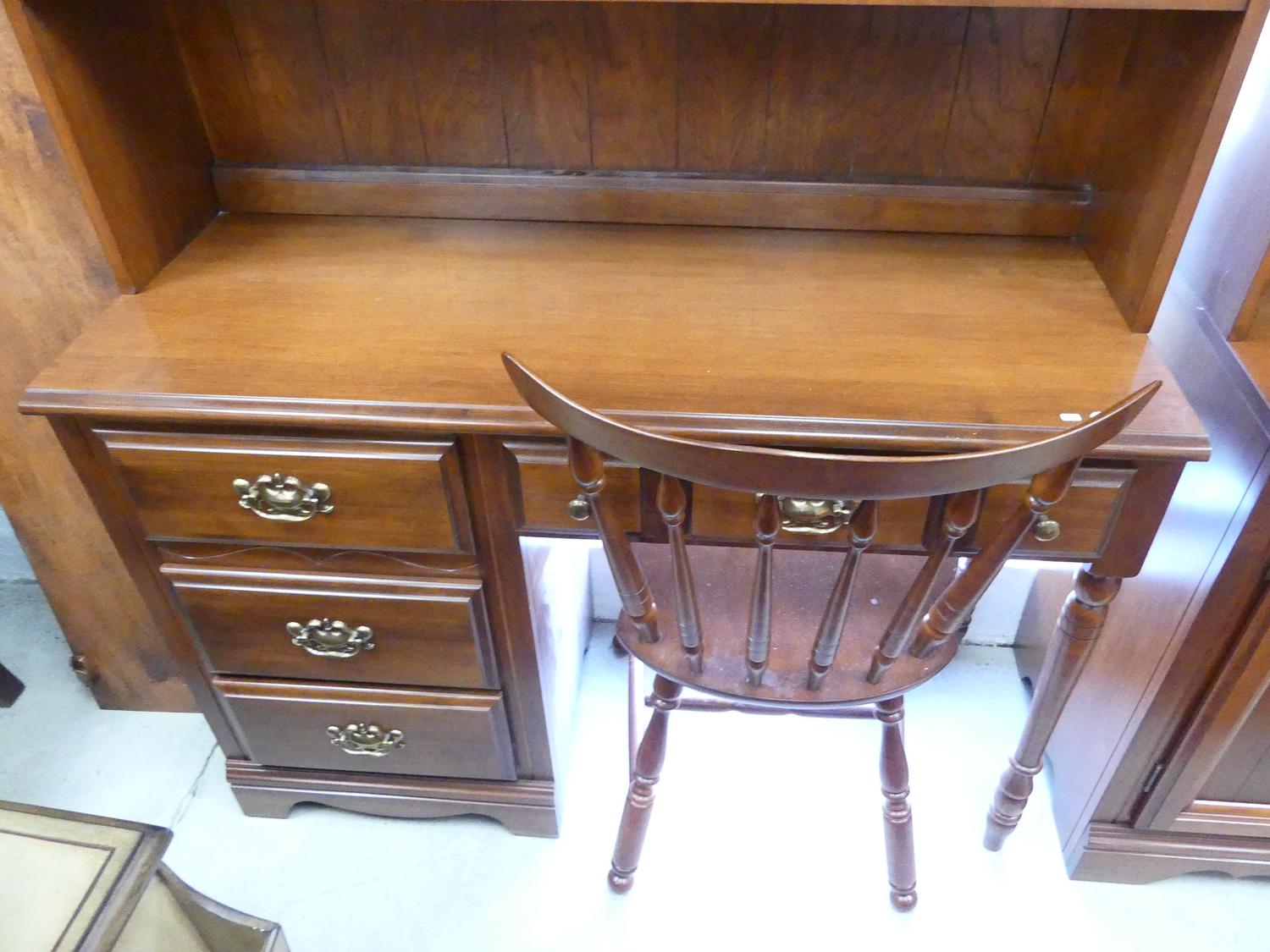 vilas maple single pedestal desk with bookshelf and chair, 74" x 43" x 16 1/2"
