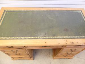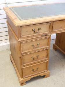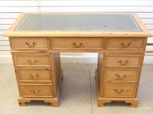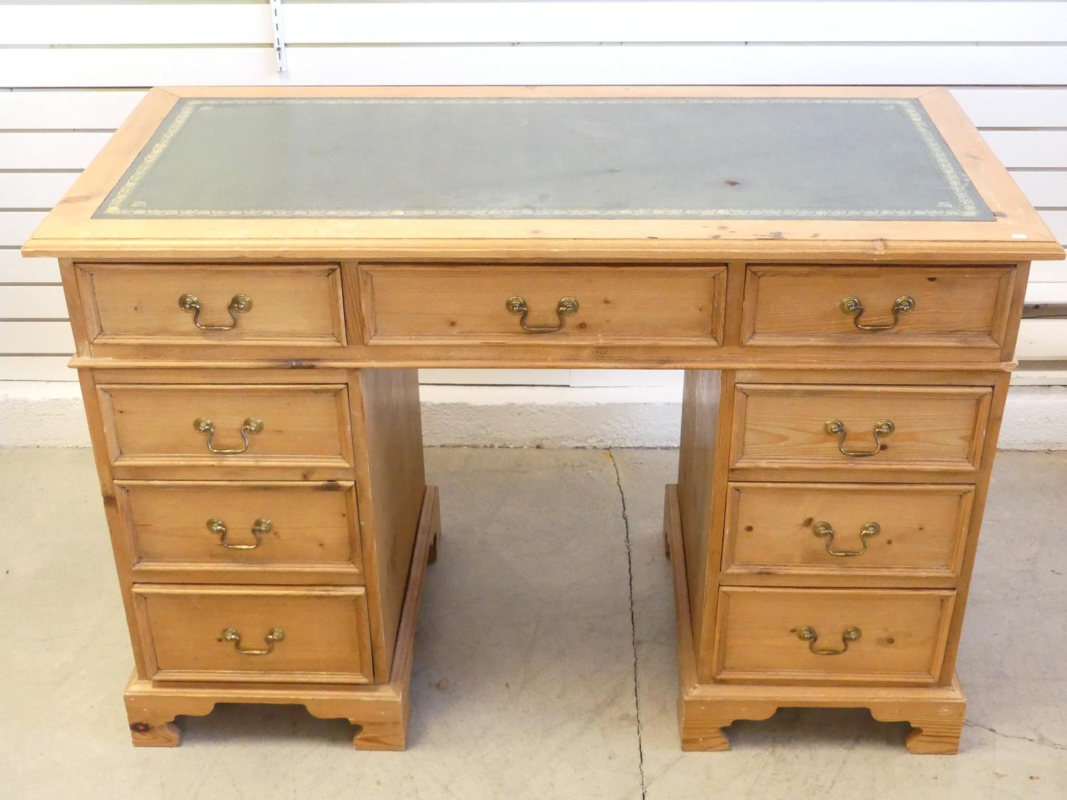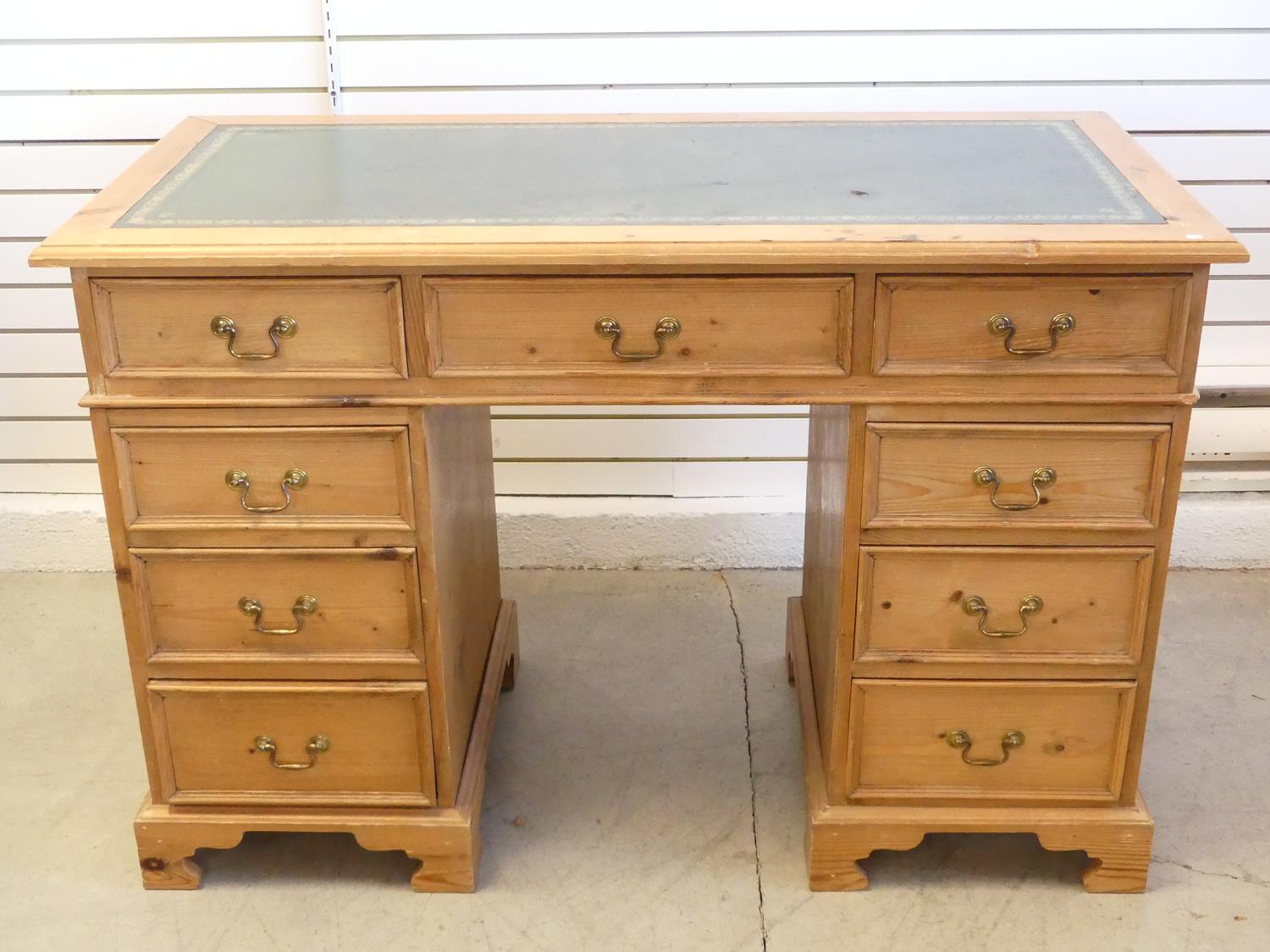 georgian style pine double pedestal desk with inset leather top, late 20th century, 31 1/2" x 48" x 23"