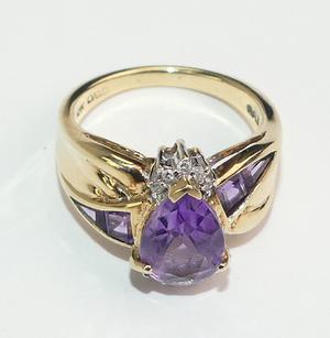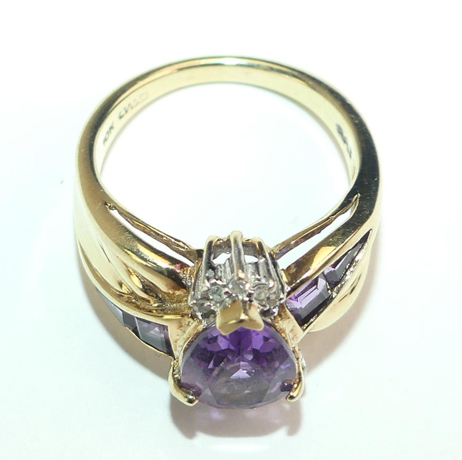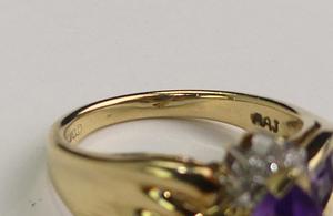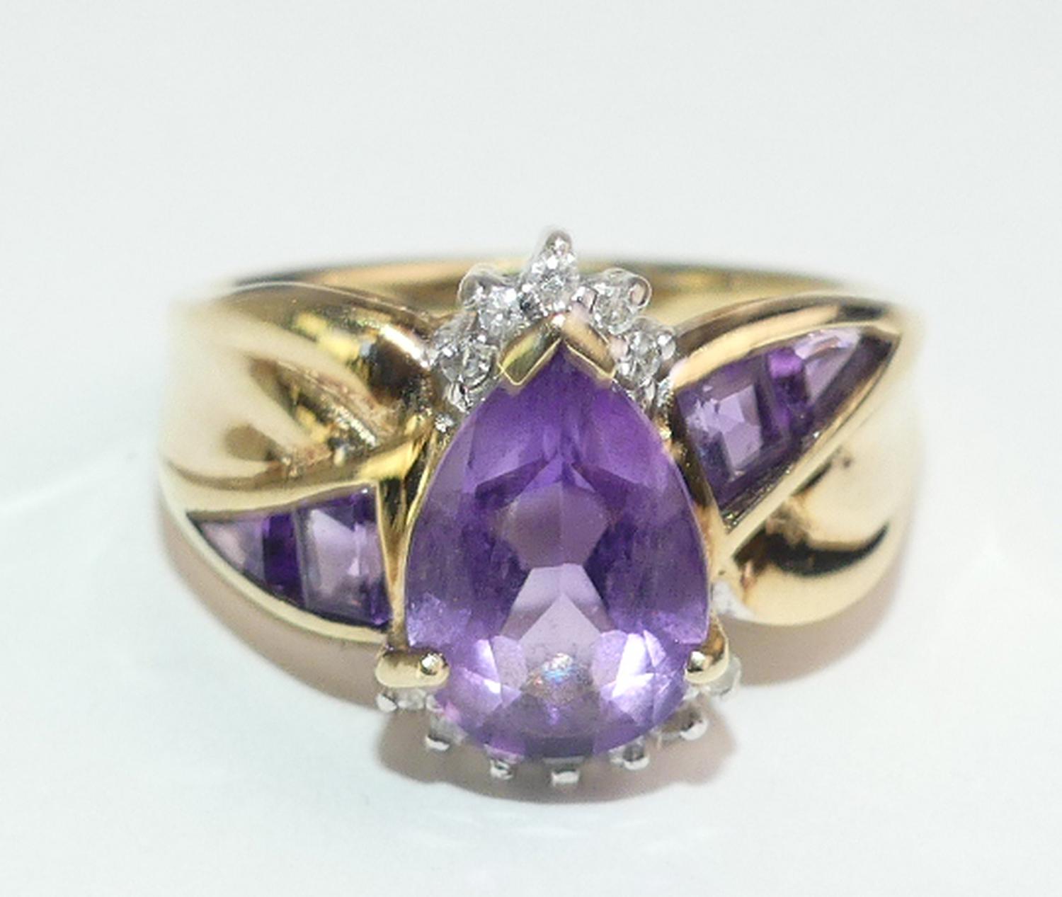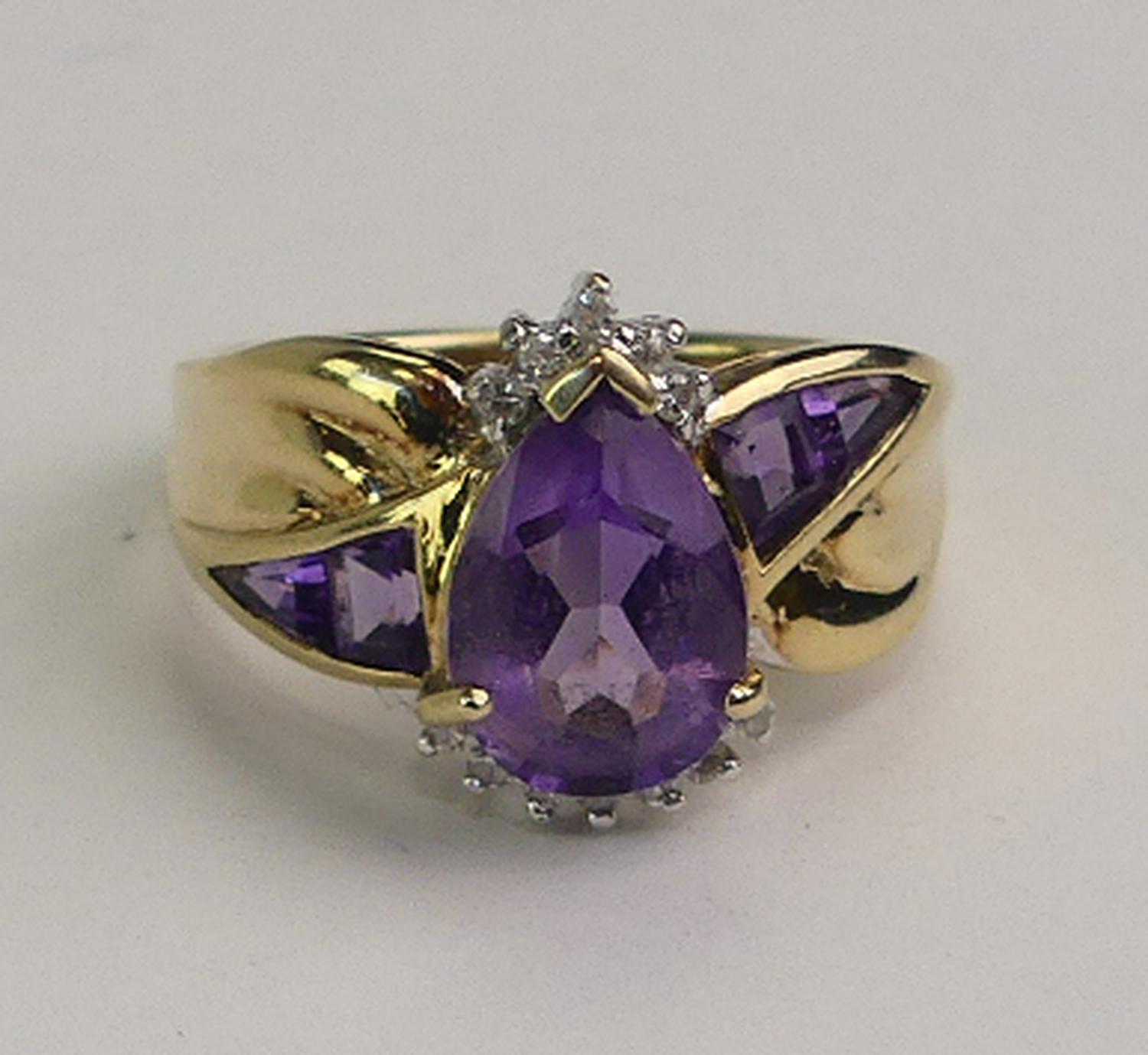 10k yellow gold amethyst and diamond ring, size 5 3/4