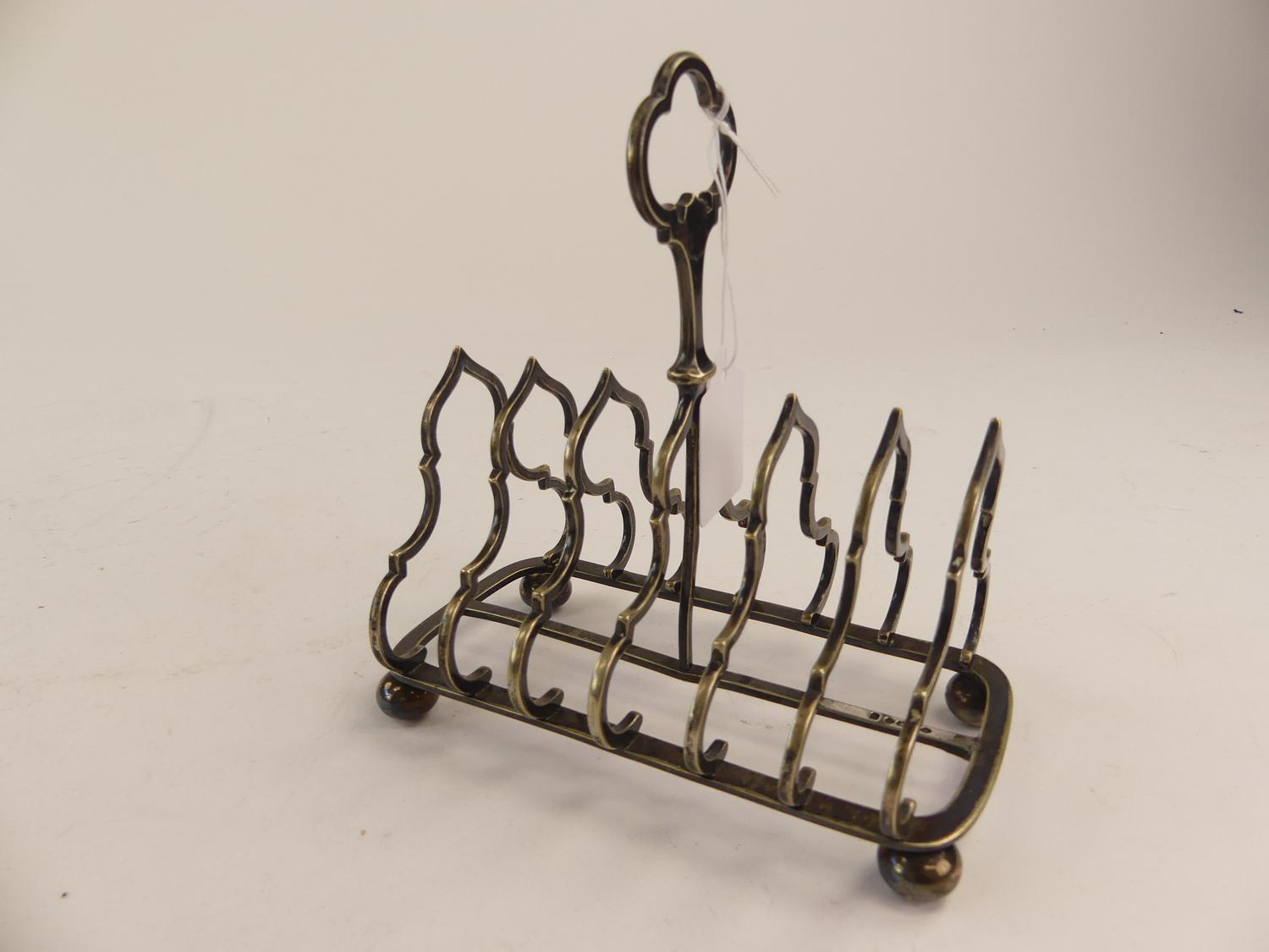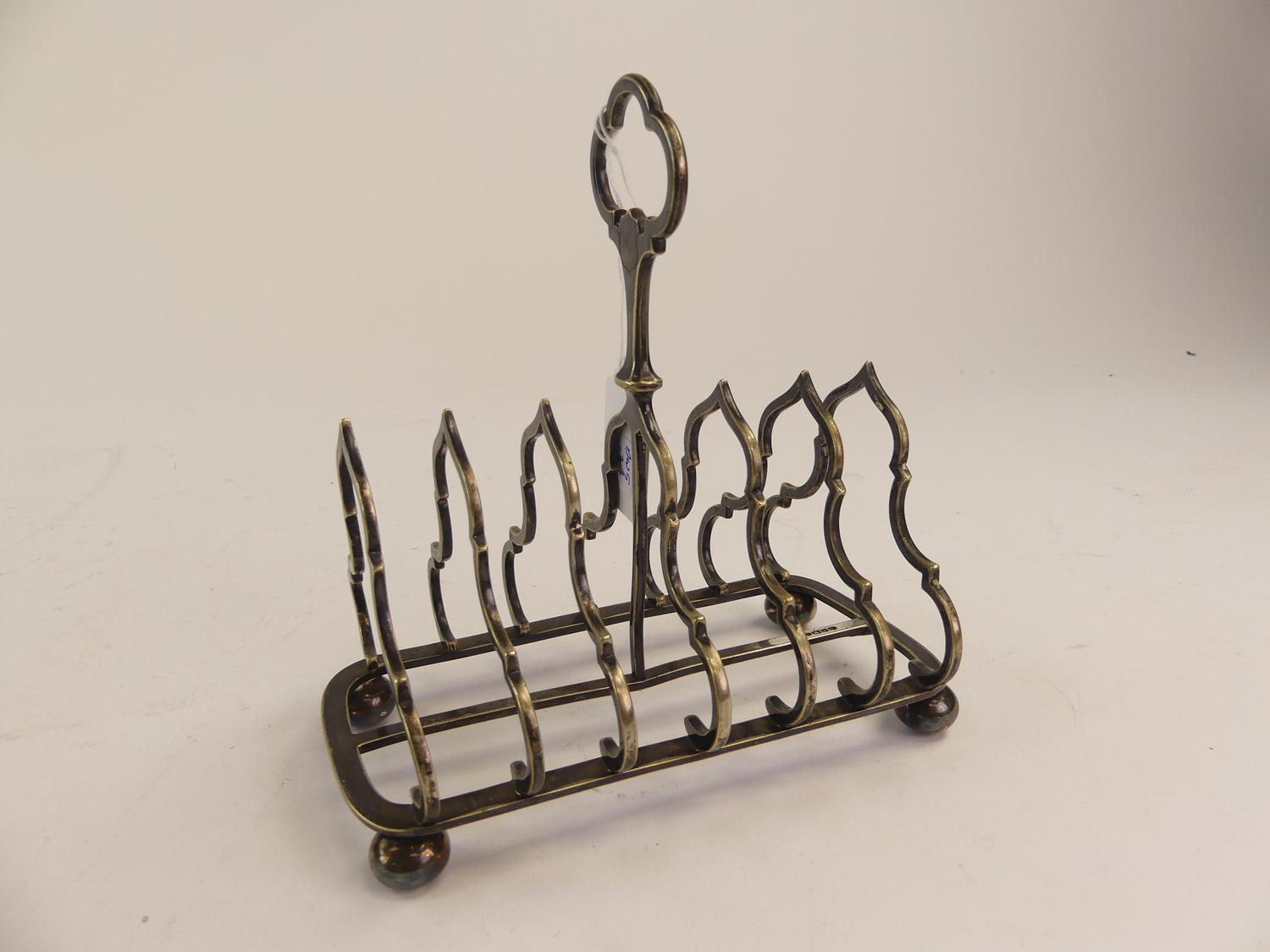 sheffield silver plate toast rack, late 19th century, length 6 1/2"