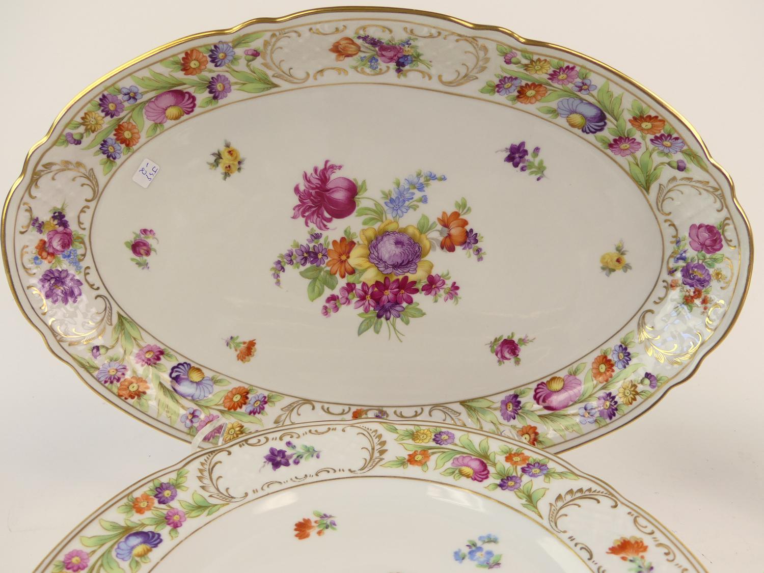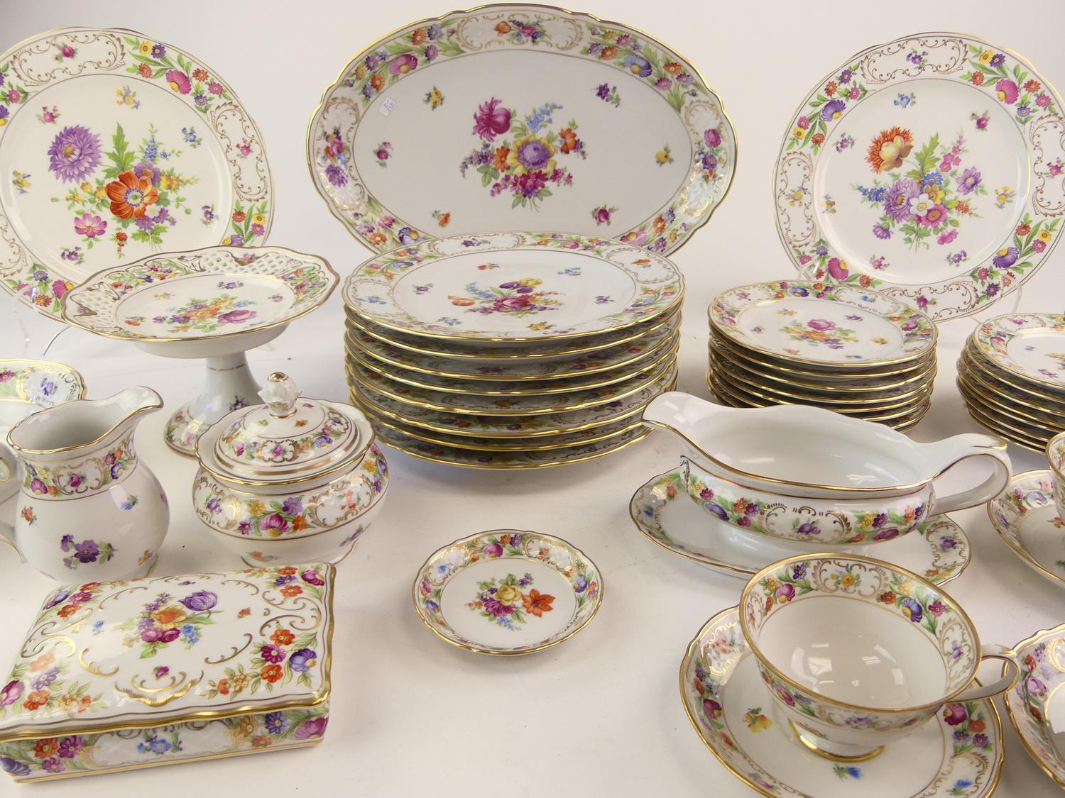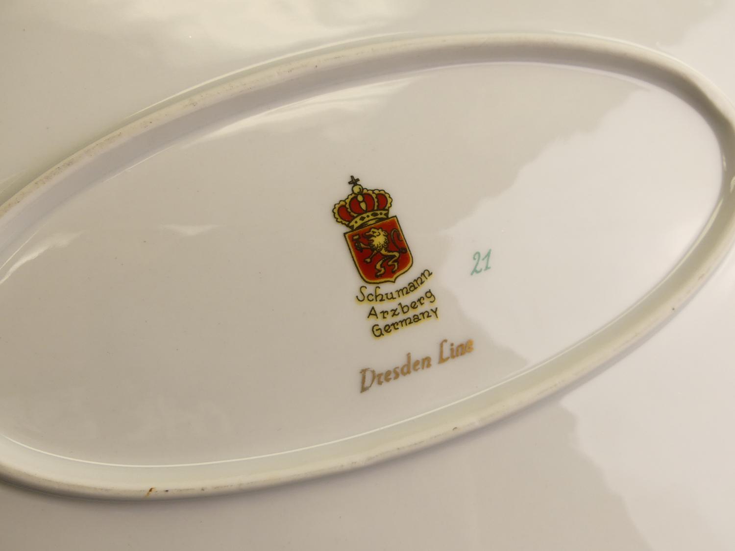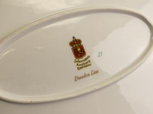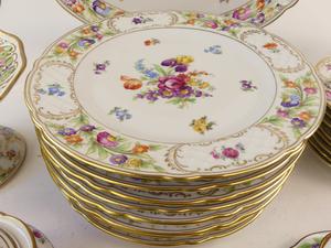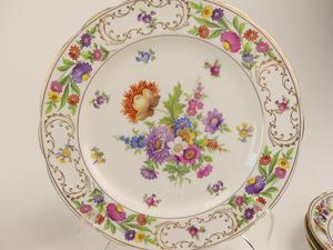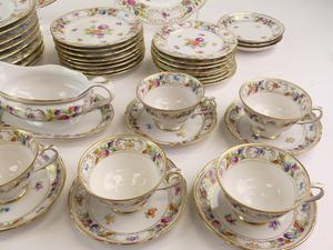 8 10" dinner plates8 6 5/8" salad plates8 6 1/4" side plates5 cups and saucers1 16" platter1 9 1/2" vegetable bowl1 covered sugar bowl1 creamer1 7 1/2" cake comport1 covered box1 gravy boat