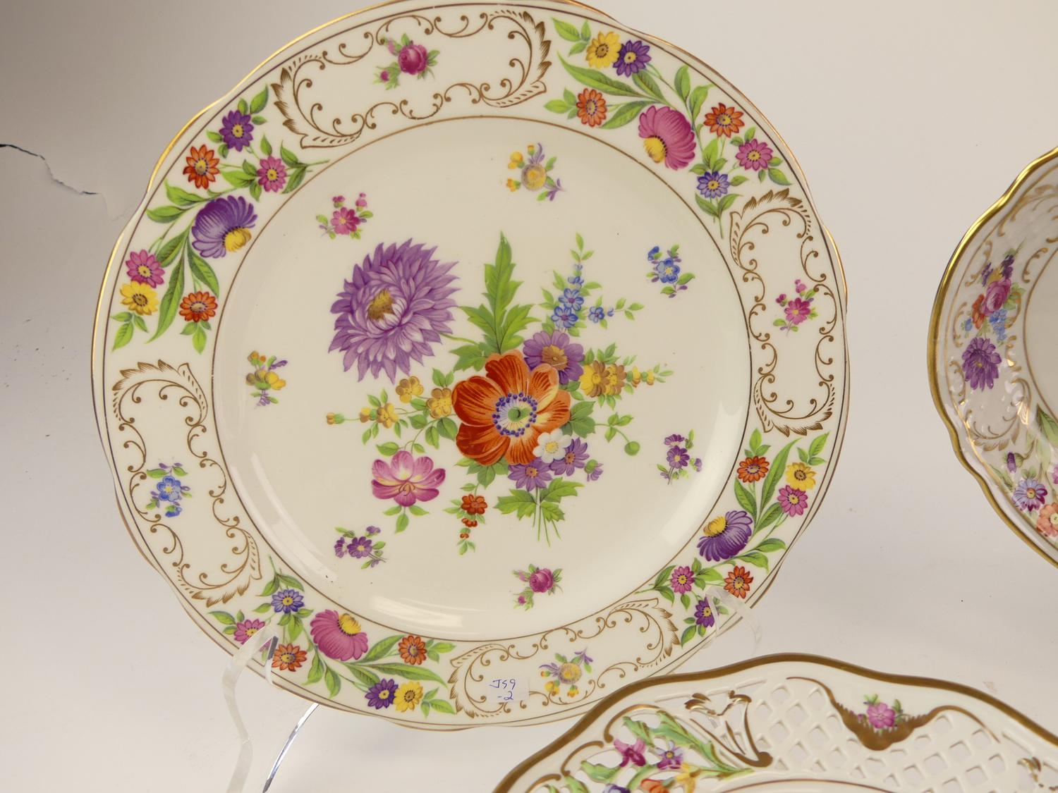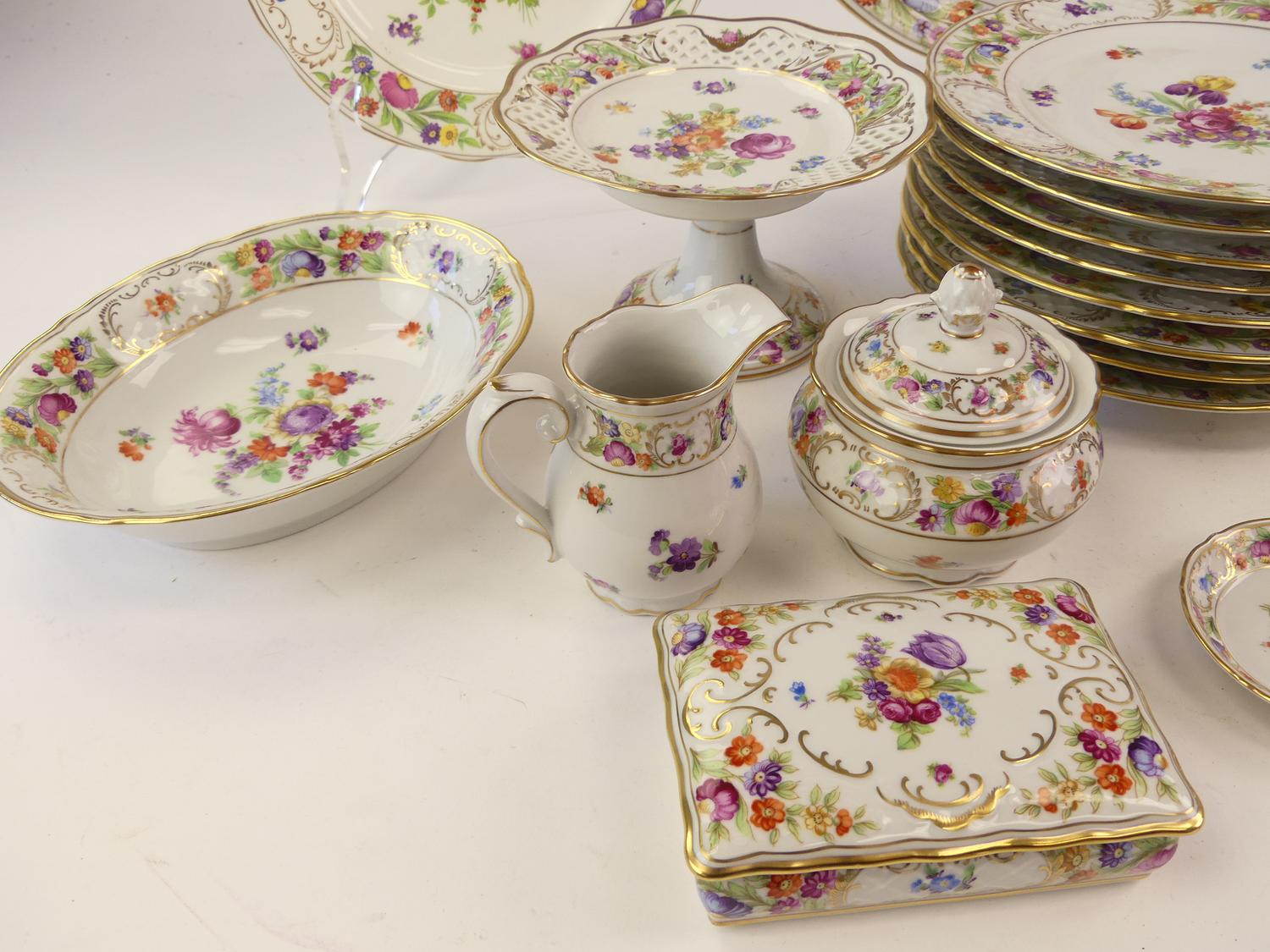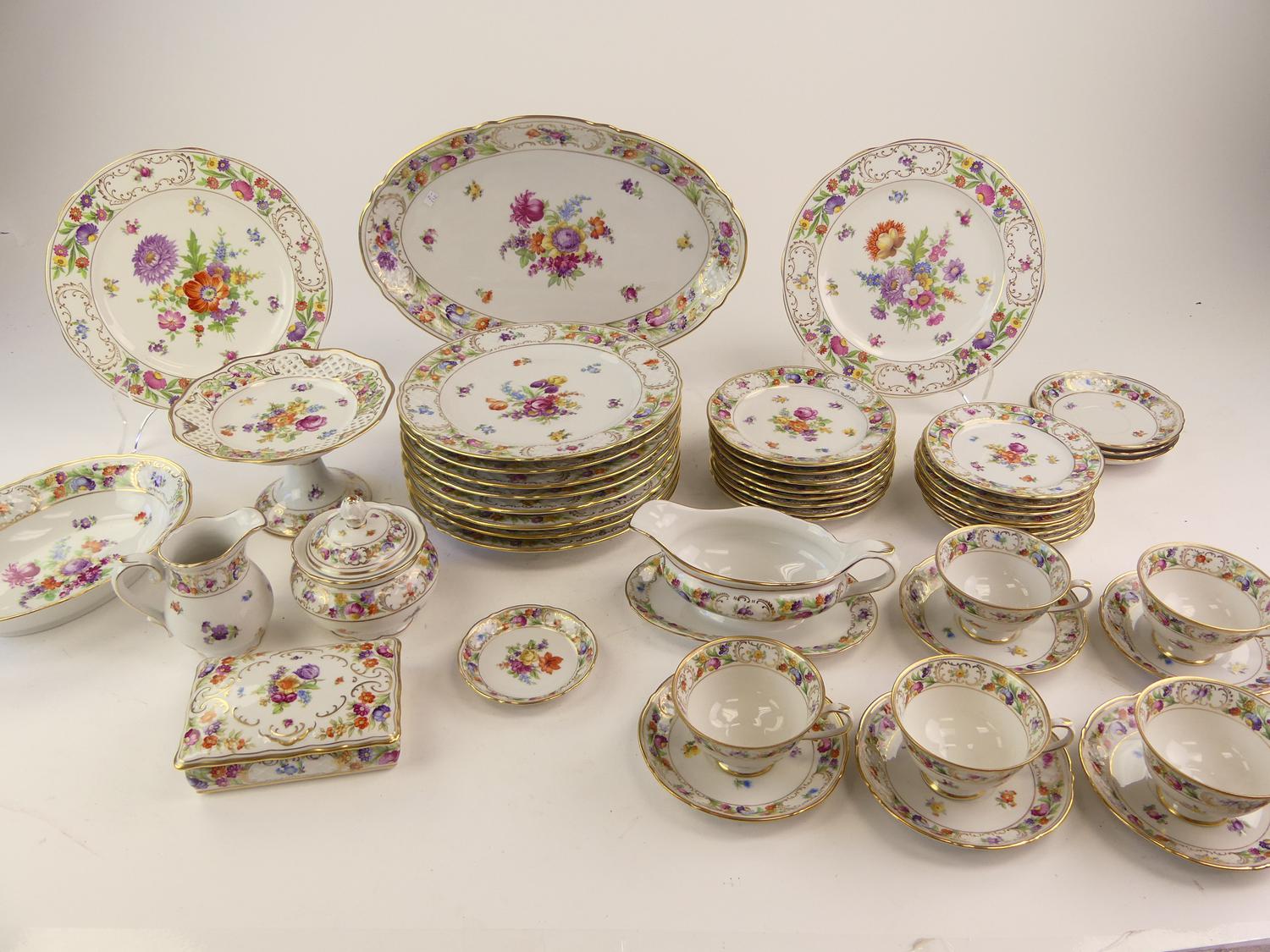 8 10" dinner plates8 6 5/8" salad plates8 6 1/4" side plates5 cups and saucers1 16" platter1 9 1/2" vegetable bowl1 covered sugar bowl1 creamer1 7 1/2" cake comport1 covered box1 gravy boat