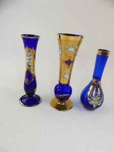 three boheminan glass vases