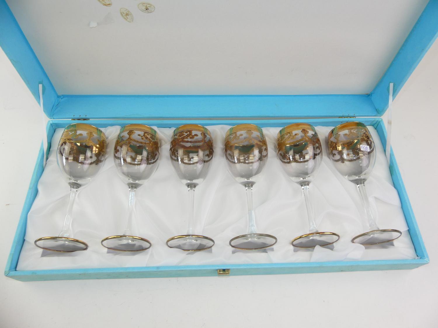 set of six italian gilt stemglasses