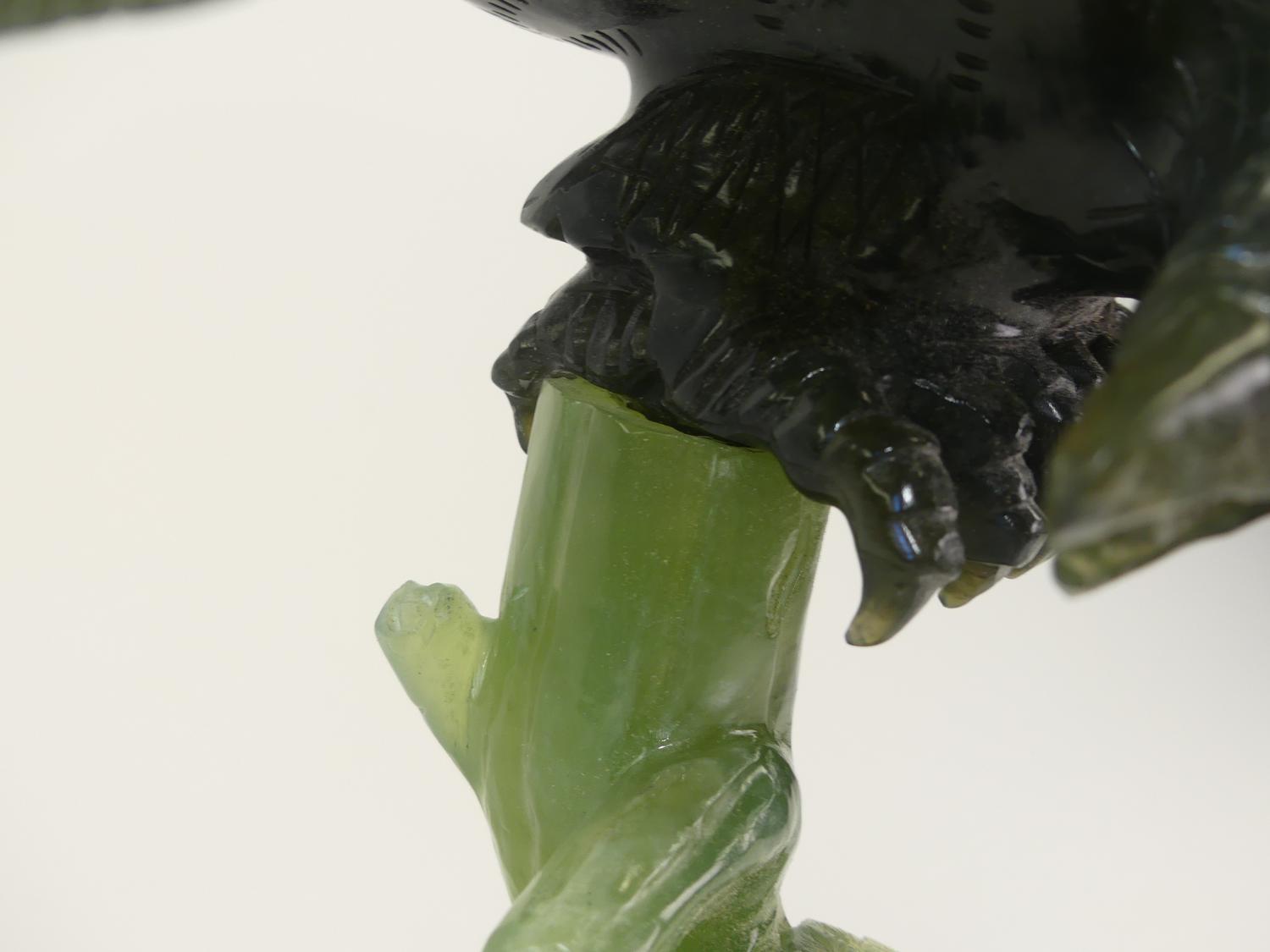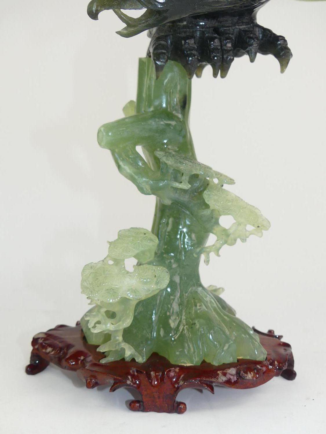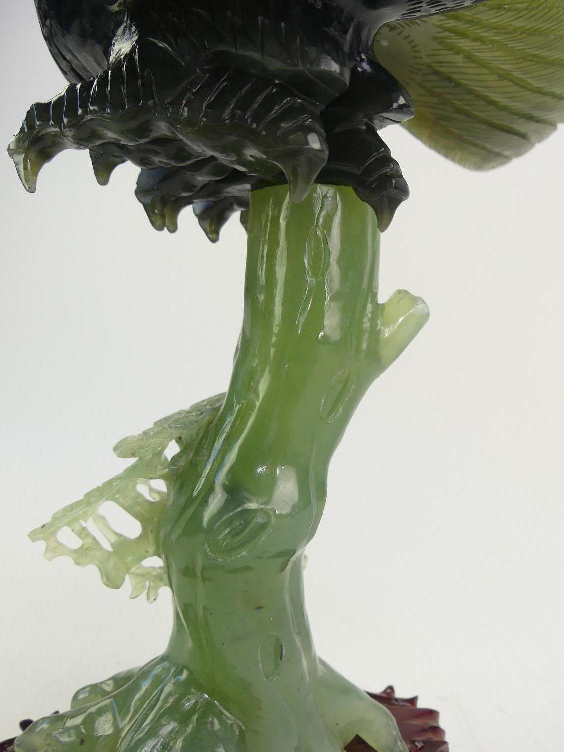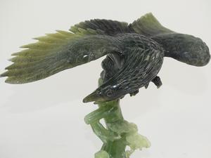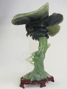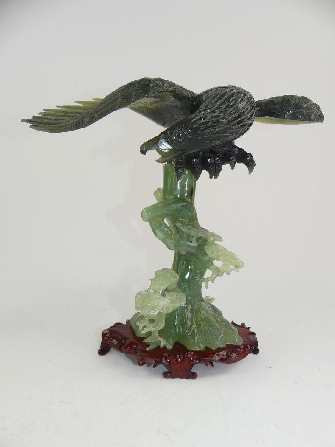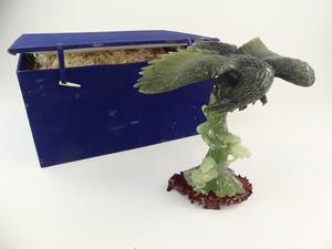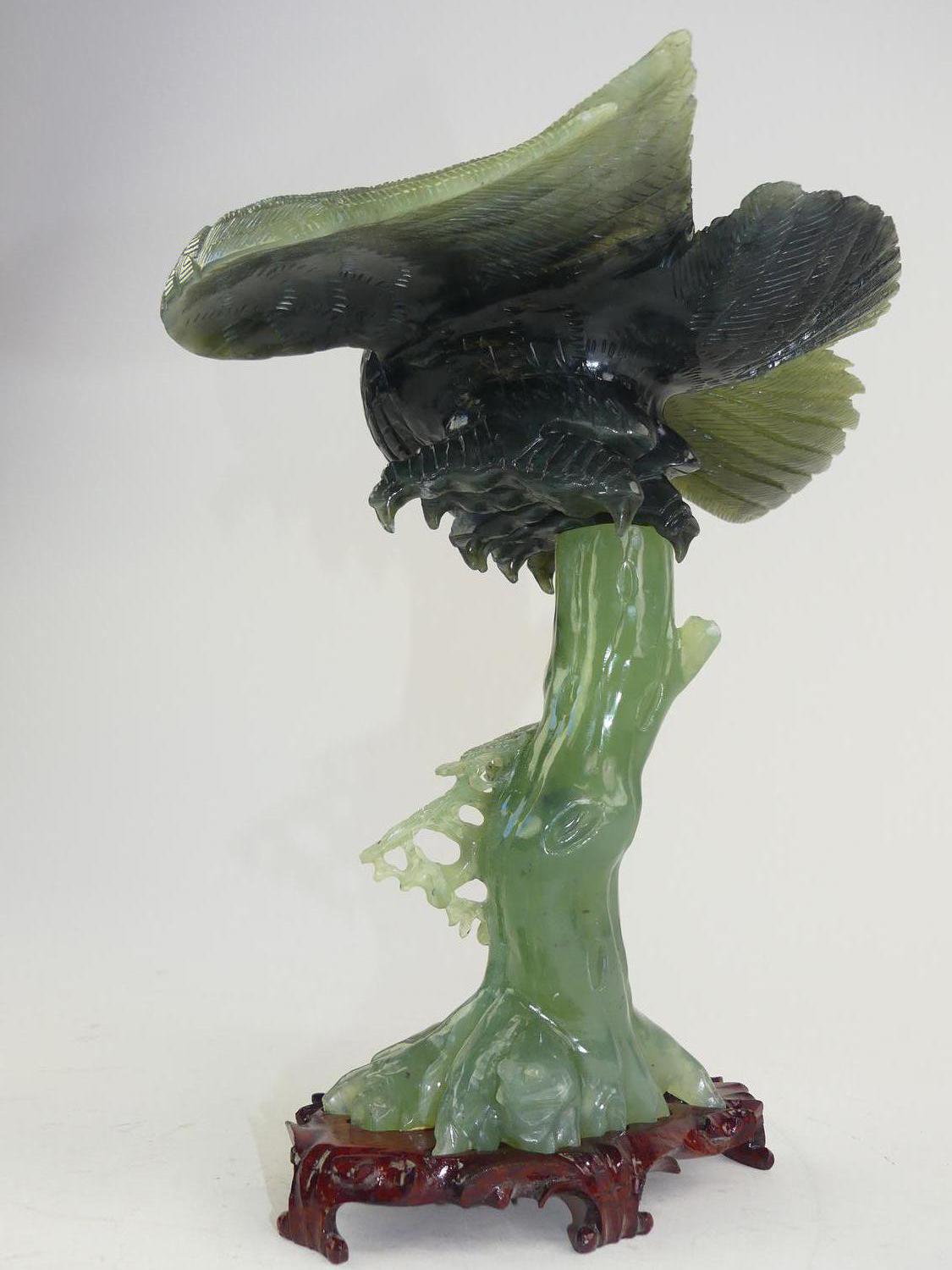 chinese carved jade eagle on stand, with box
