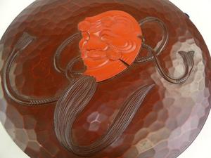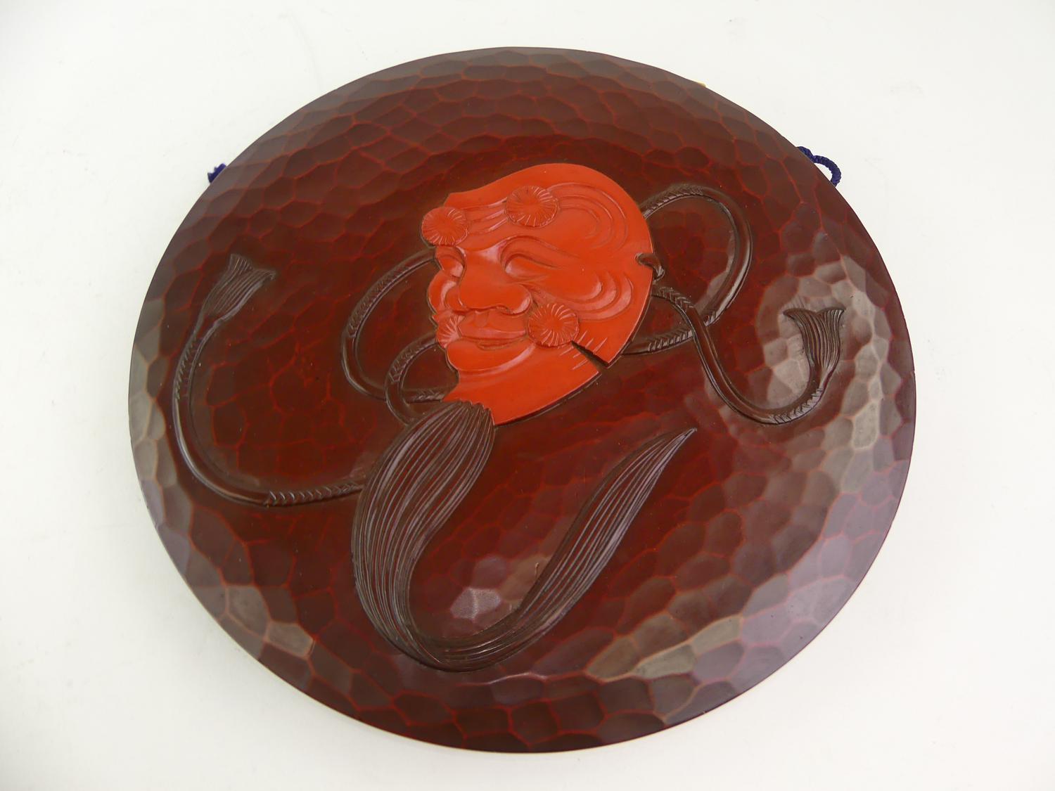 japanese showa period lacquered mask wall plaque, dia. 14 1/2"