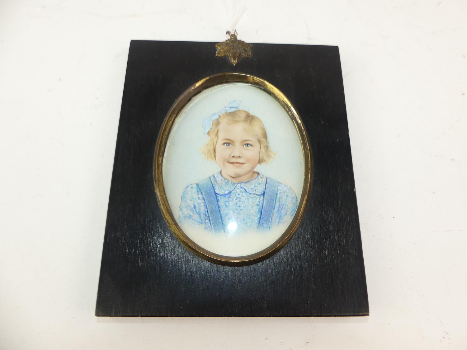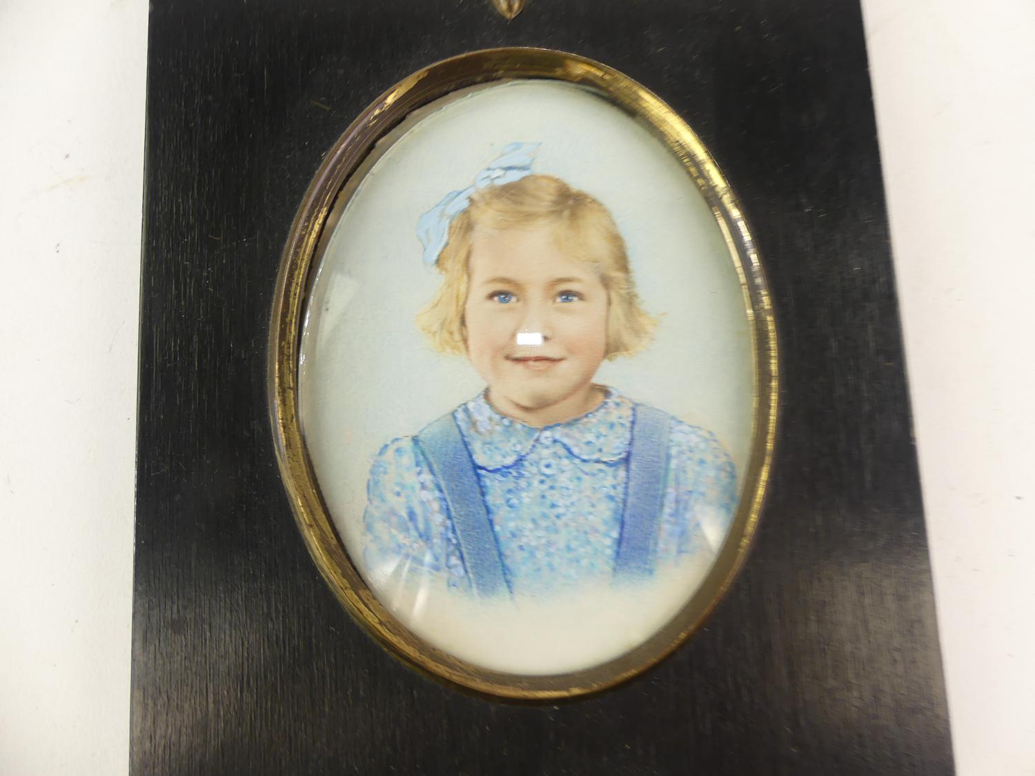 early 20th century miniature portrait of a young girl, overall 6 1/2" x 5"