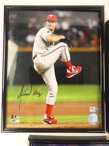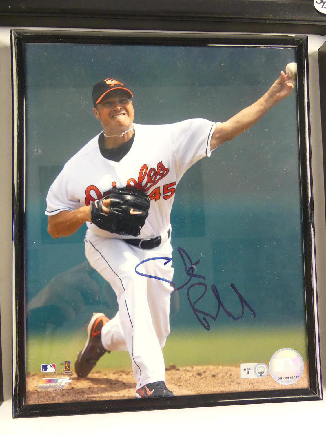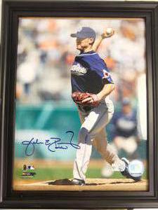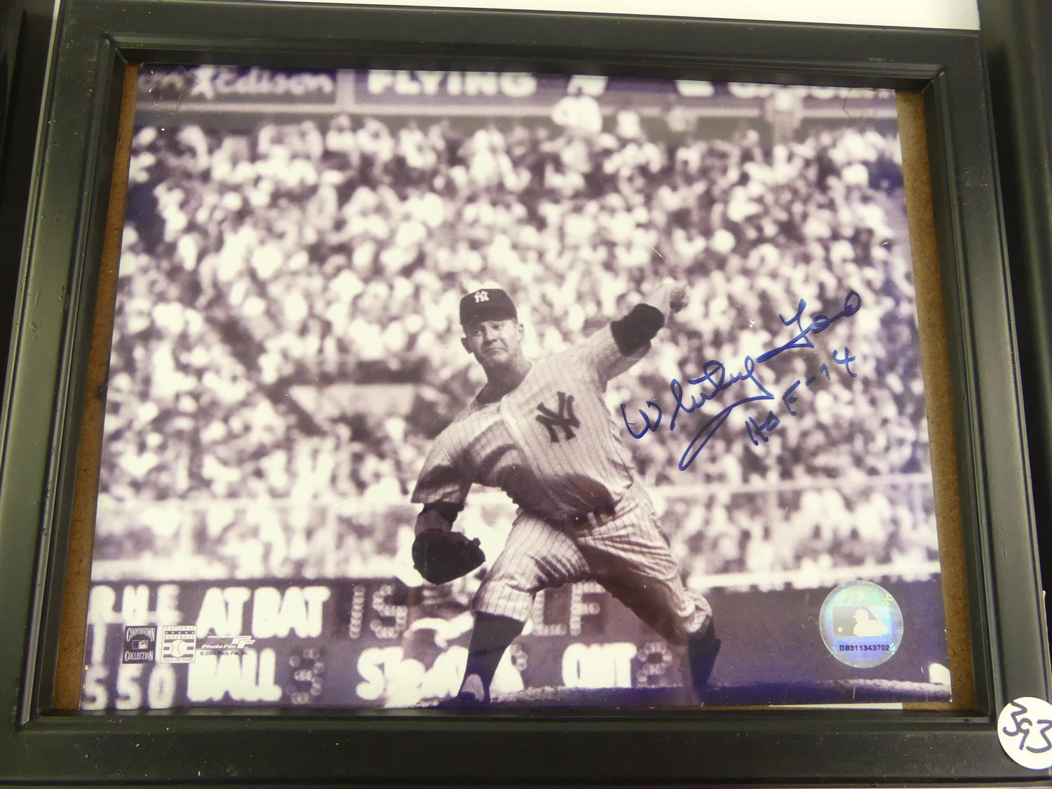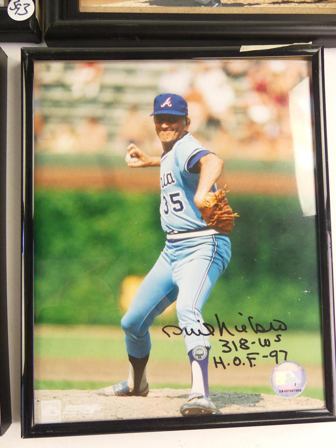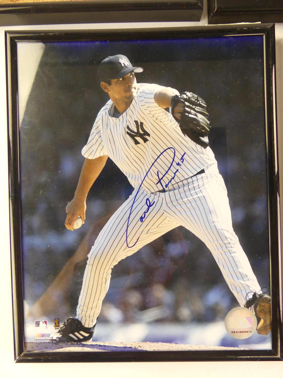 six framed autographed photographs, whitey ford, jamie moyer, phil niekro, carl pavano, erik bedard and jake peavy