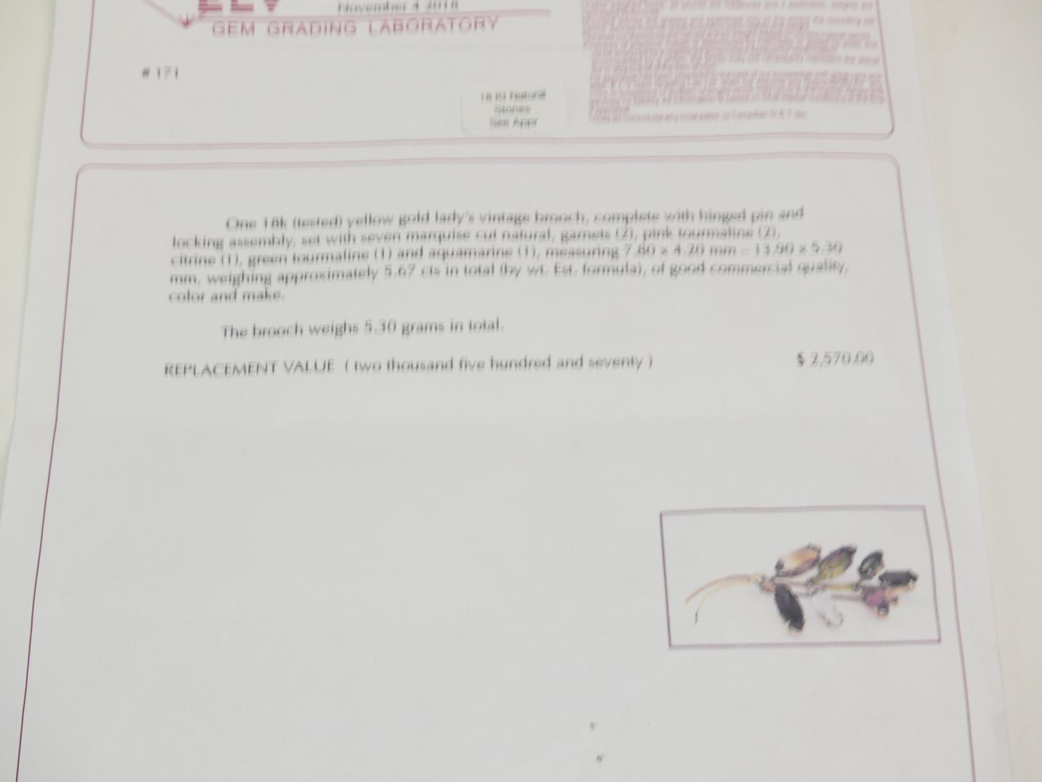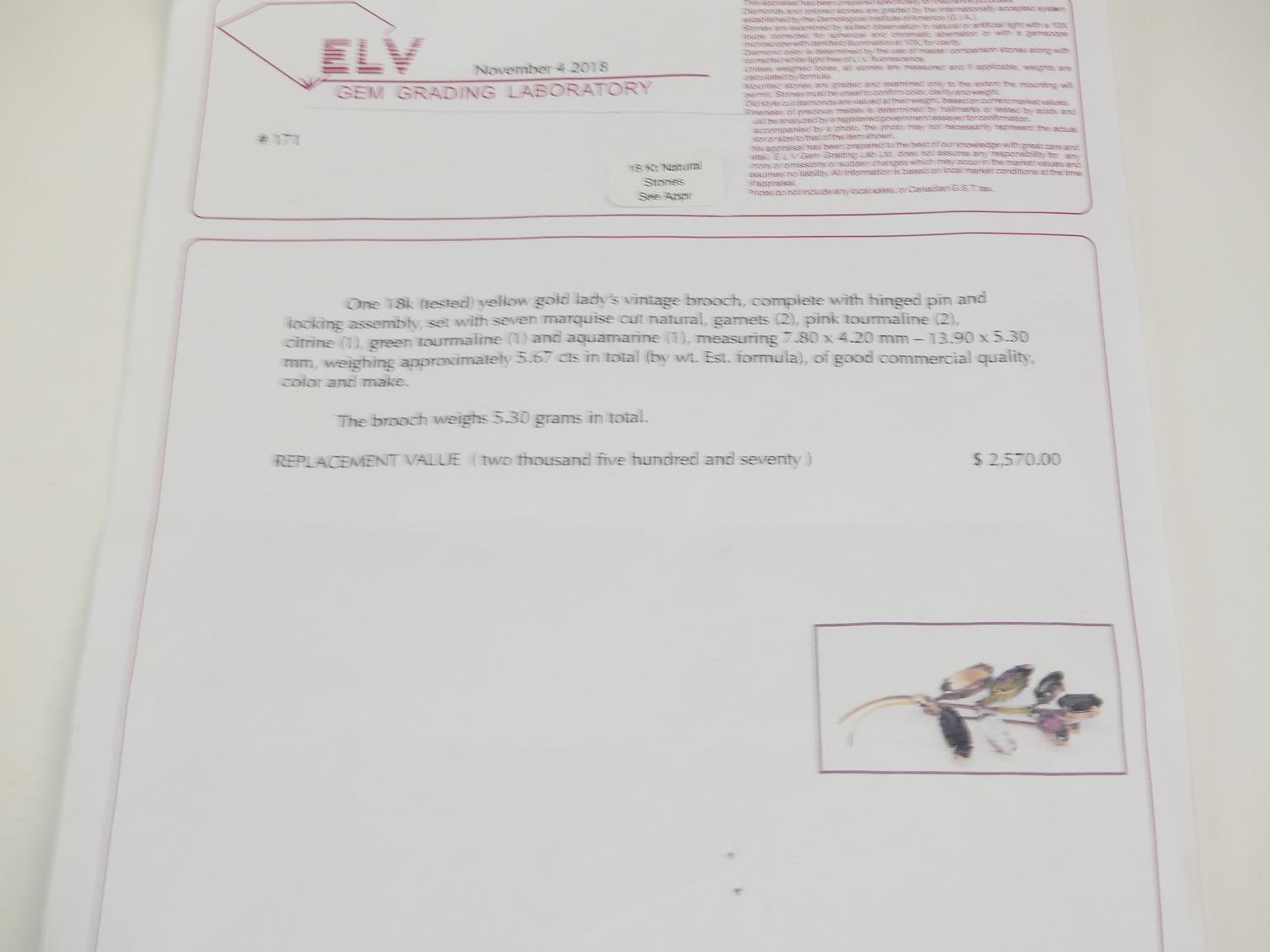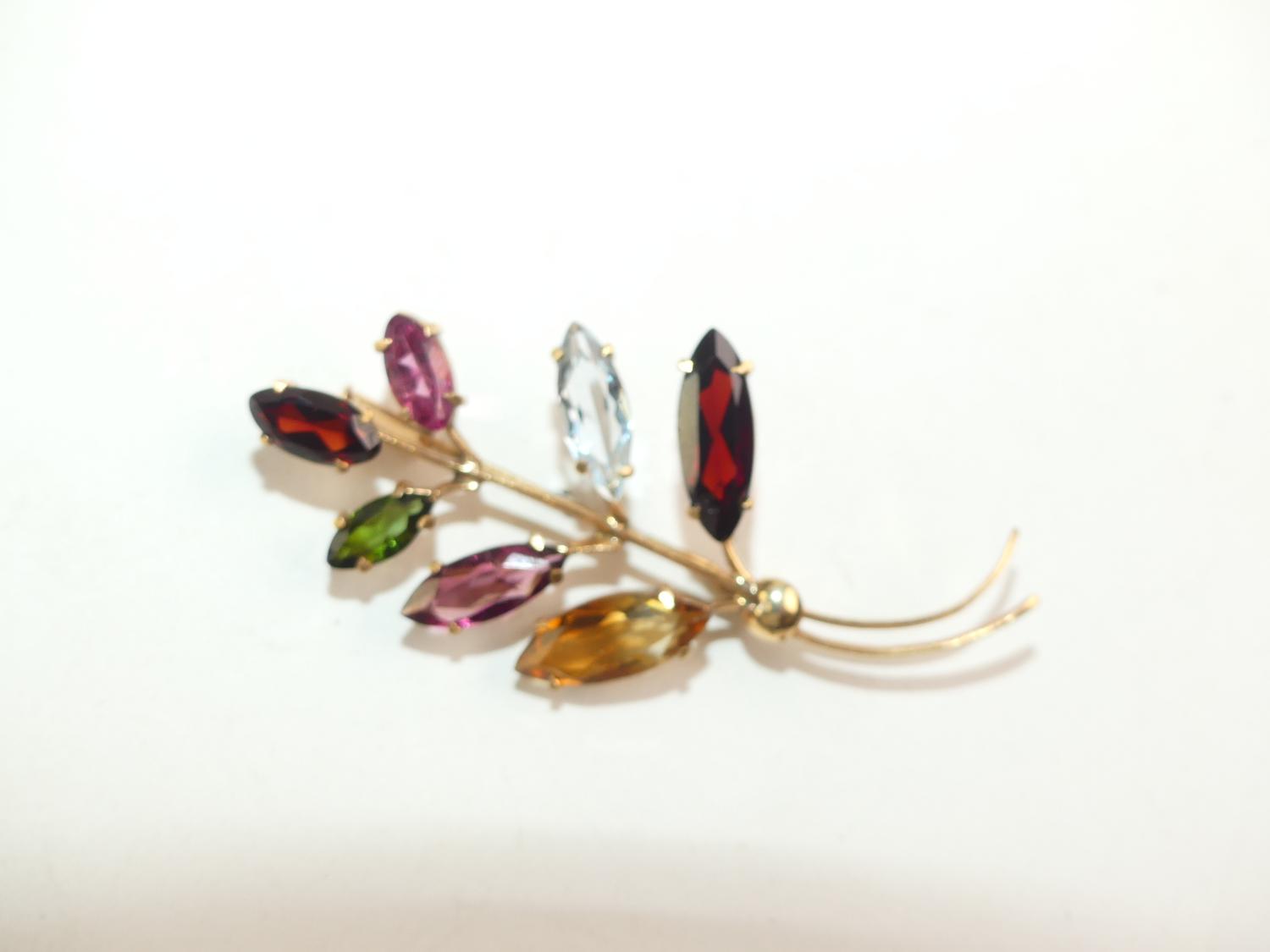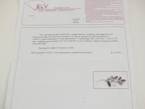 18k gold gemstone leaf brooch with appraisal