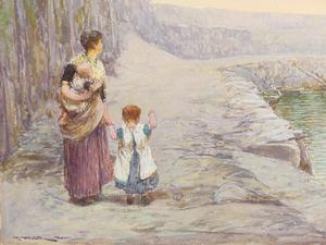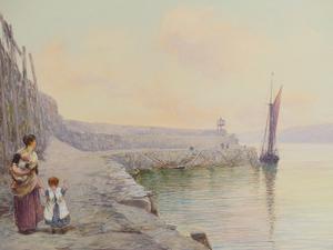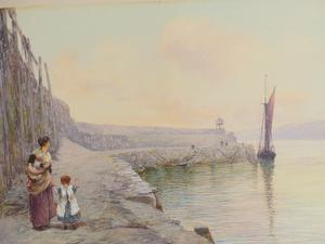 john white (1851-1933), watercolour, 10 3/4" x 14 1/2", "to see him come ashore"