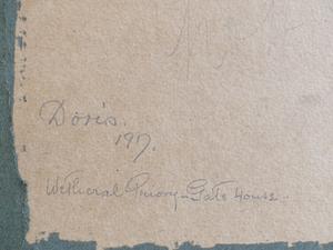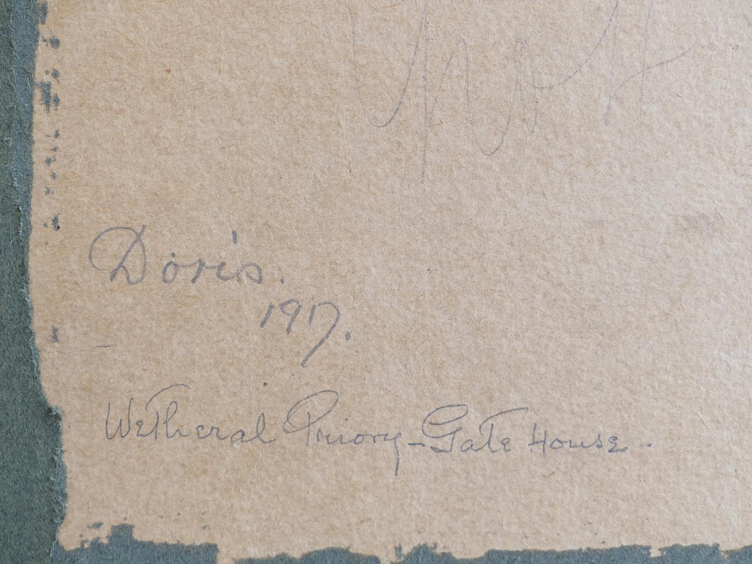 doris, d.1917, watercolour, 5" x 6 1/2", "wetheral priory - gate house"