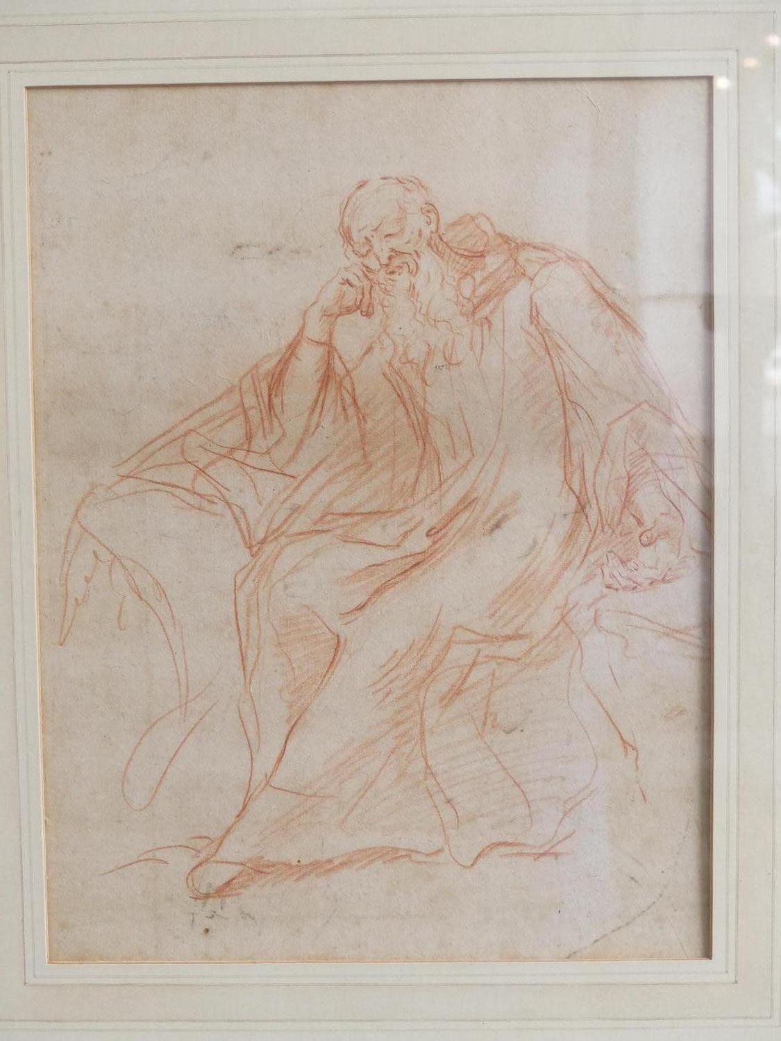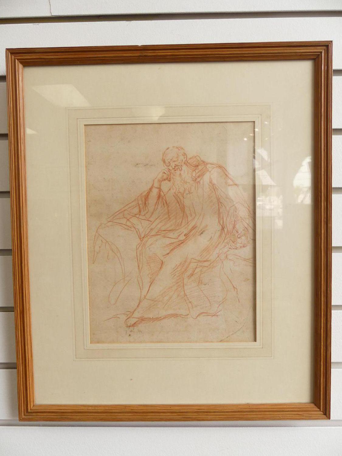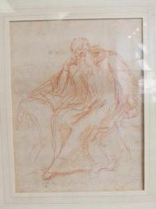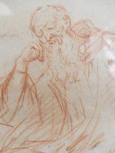 after jean-honore fragonard (1732-1806), red chalk on paper, 11" x 8", "study of a seated man"