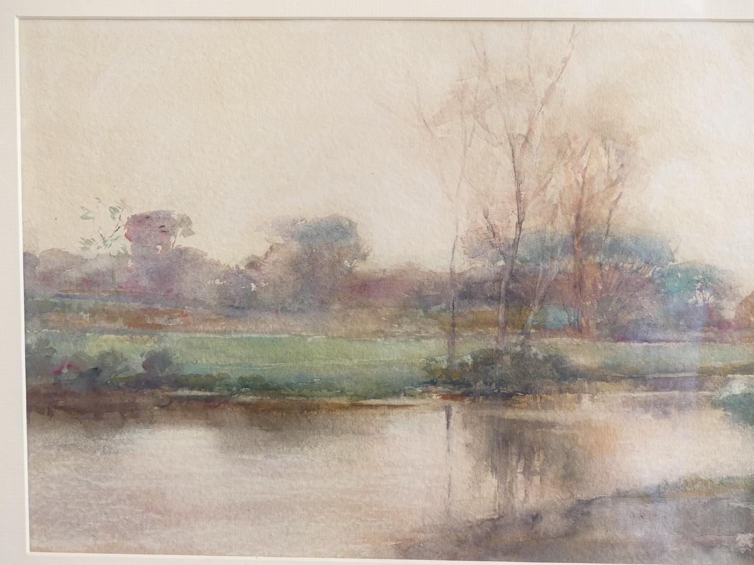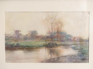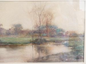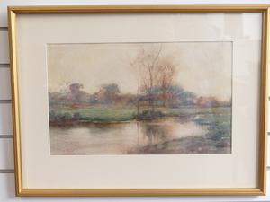 unsigned early 20th century watercolour, 9" x 5", "landscape with river"