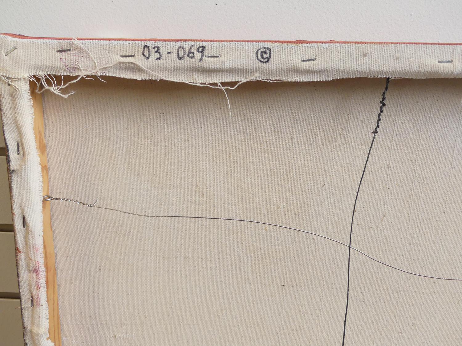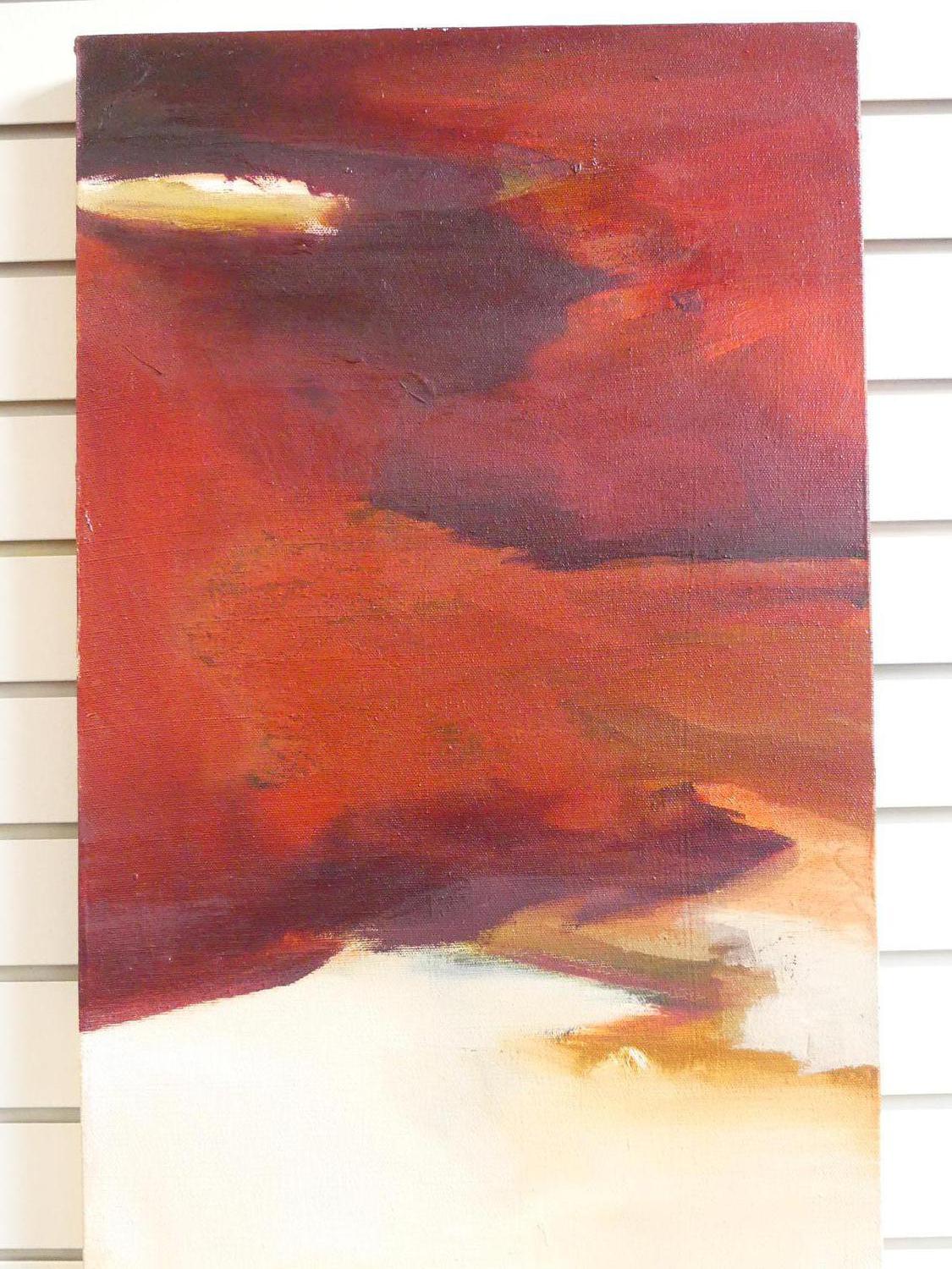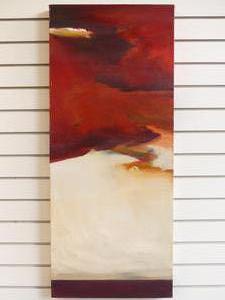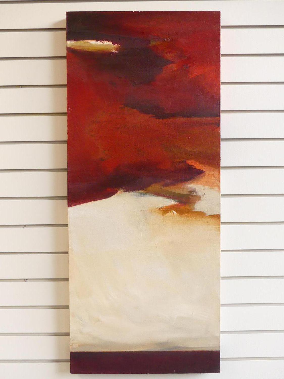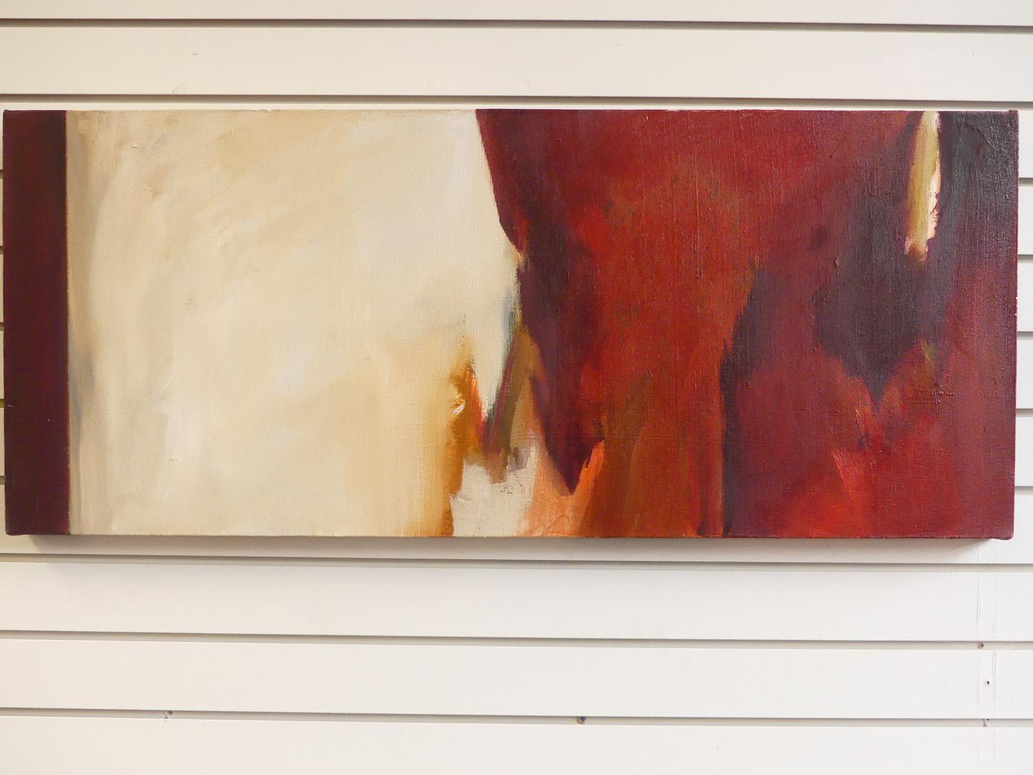 k. lane, d. 2003, oil on canvas, 16" x 38", "abstract"