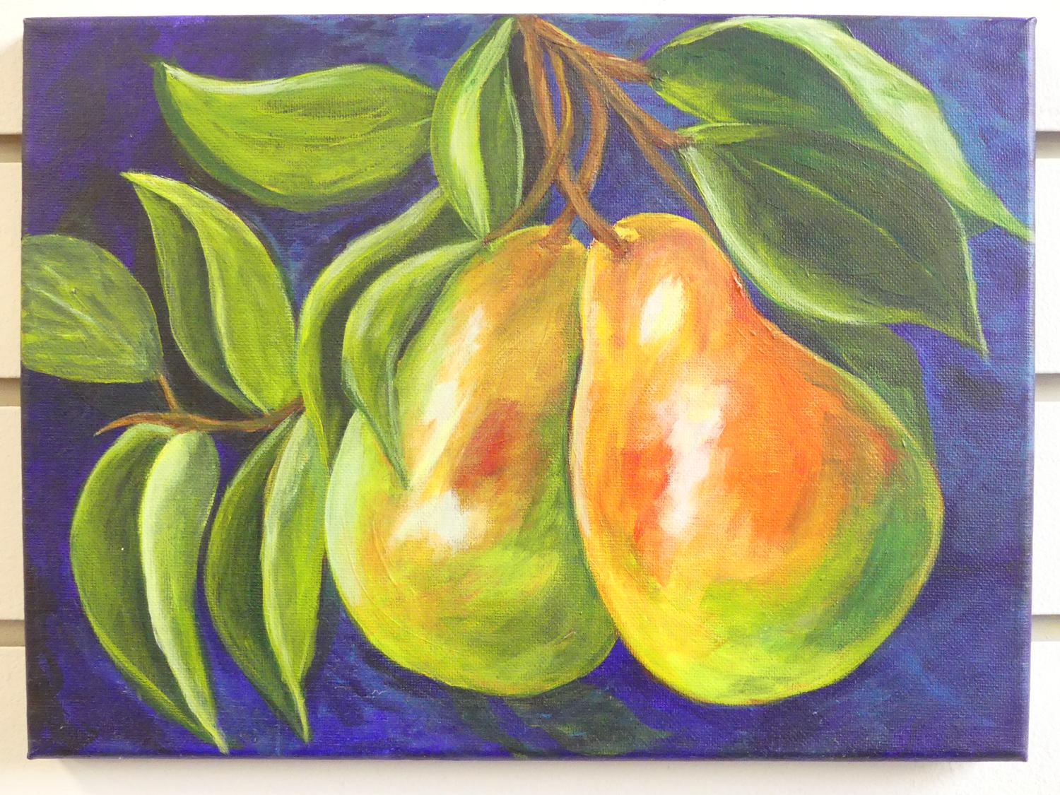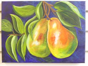 leta bugg, d.2021, acrylic on canvas, 9" x 12", "a pair of pears"