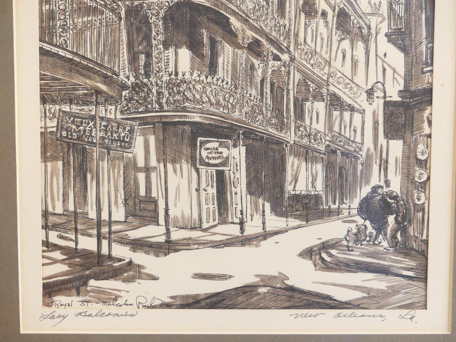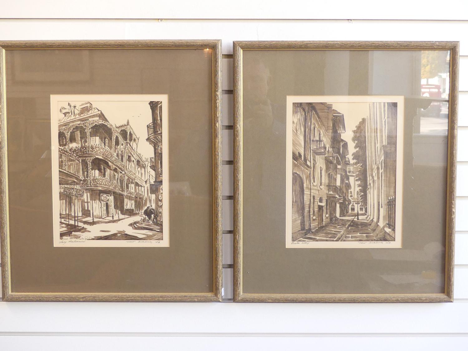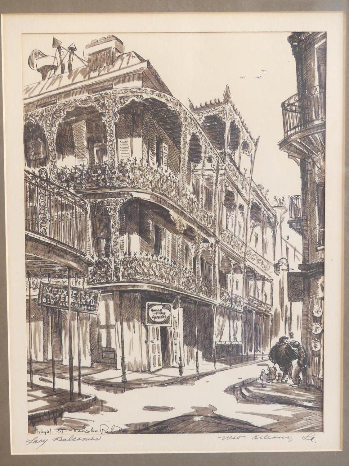malcolm newman, teo pen and ink drawings, 12" x 9", "new orleans - street scenes"