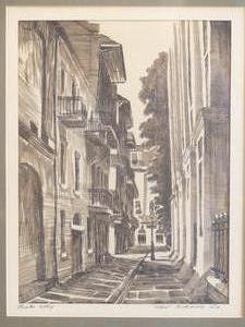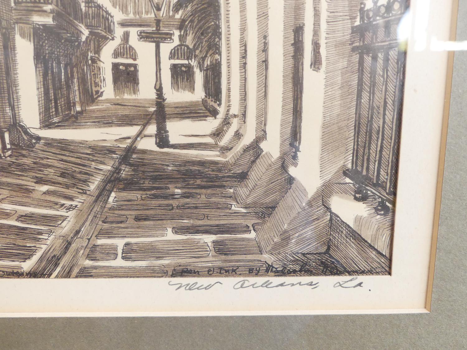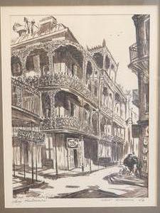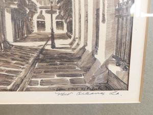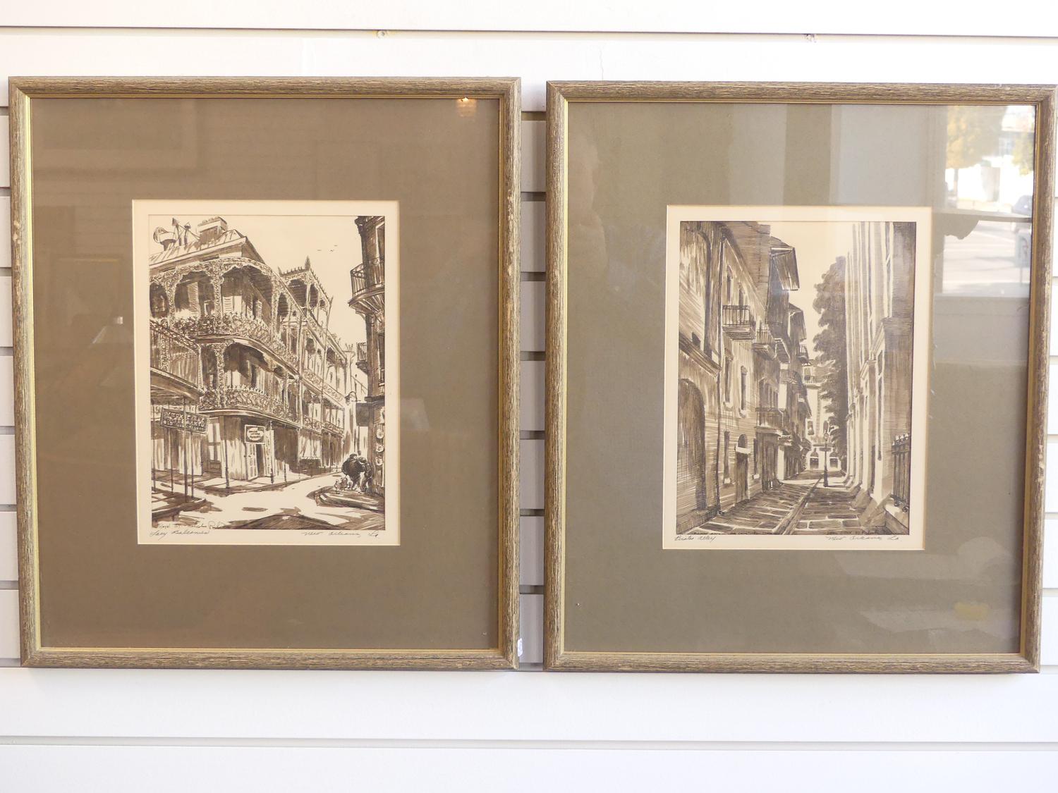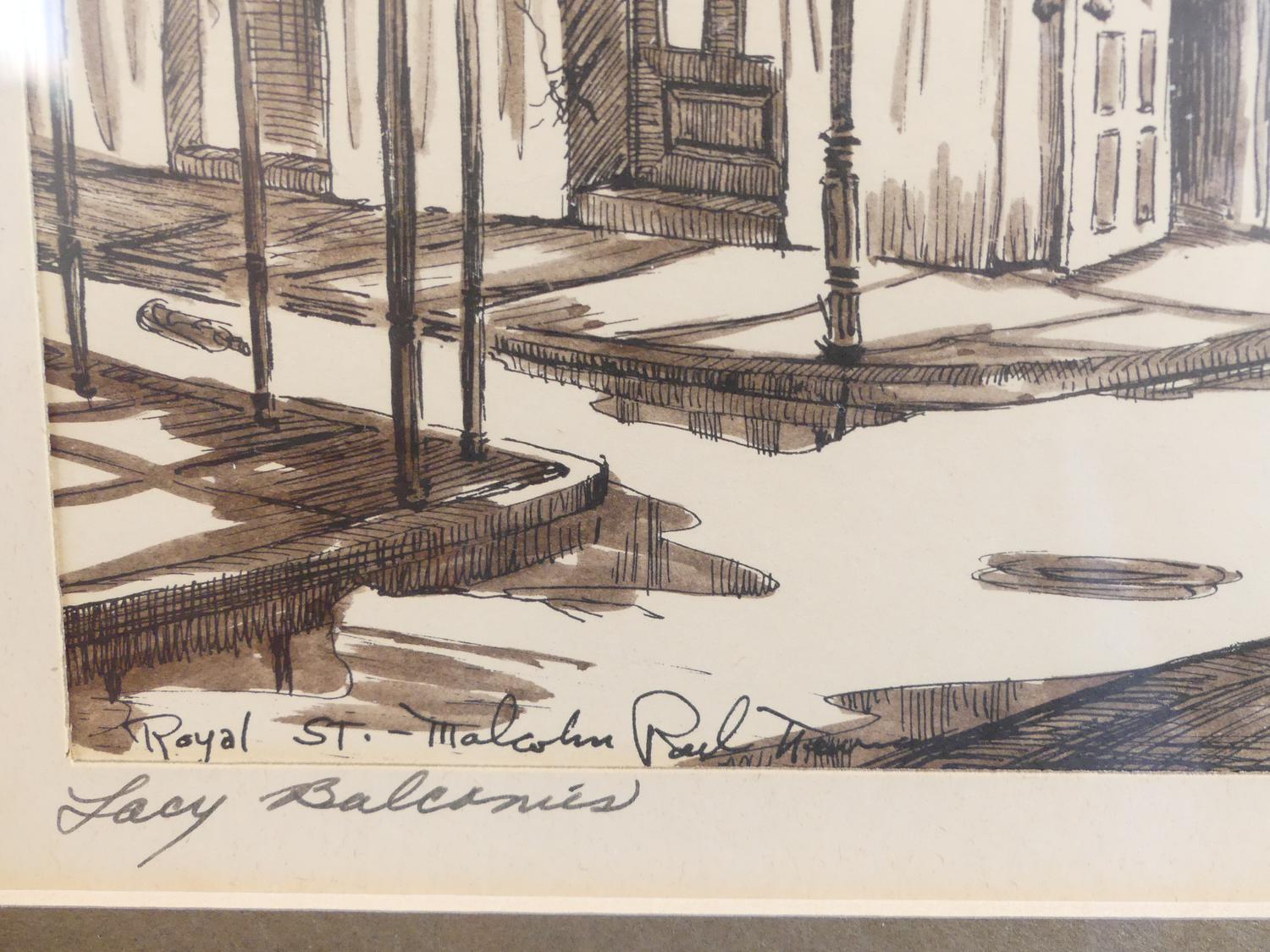 malcolm newman, teo pen and ink drawings, 12" x 9", "new orleans - street scenes"