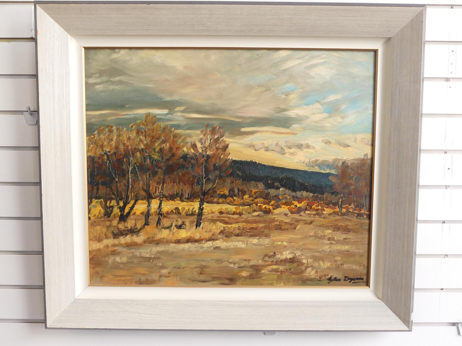 john holroyd dyson (1910-1993), oil on board, 20" x 24", "autumn in the cariboo"