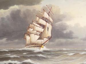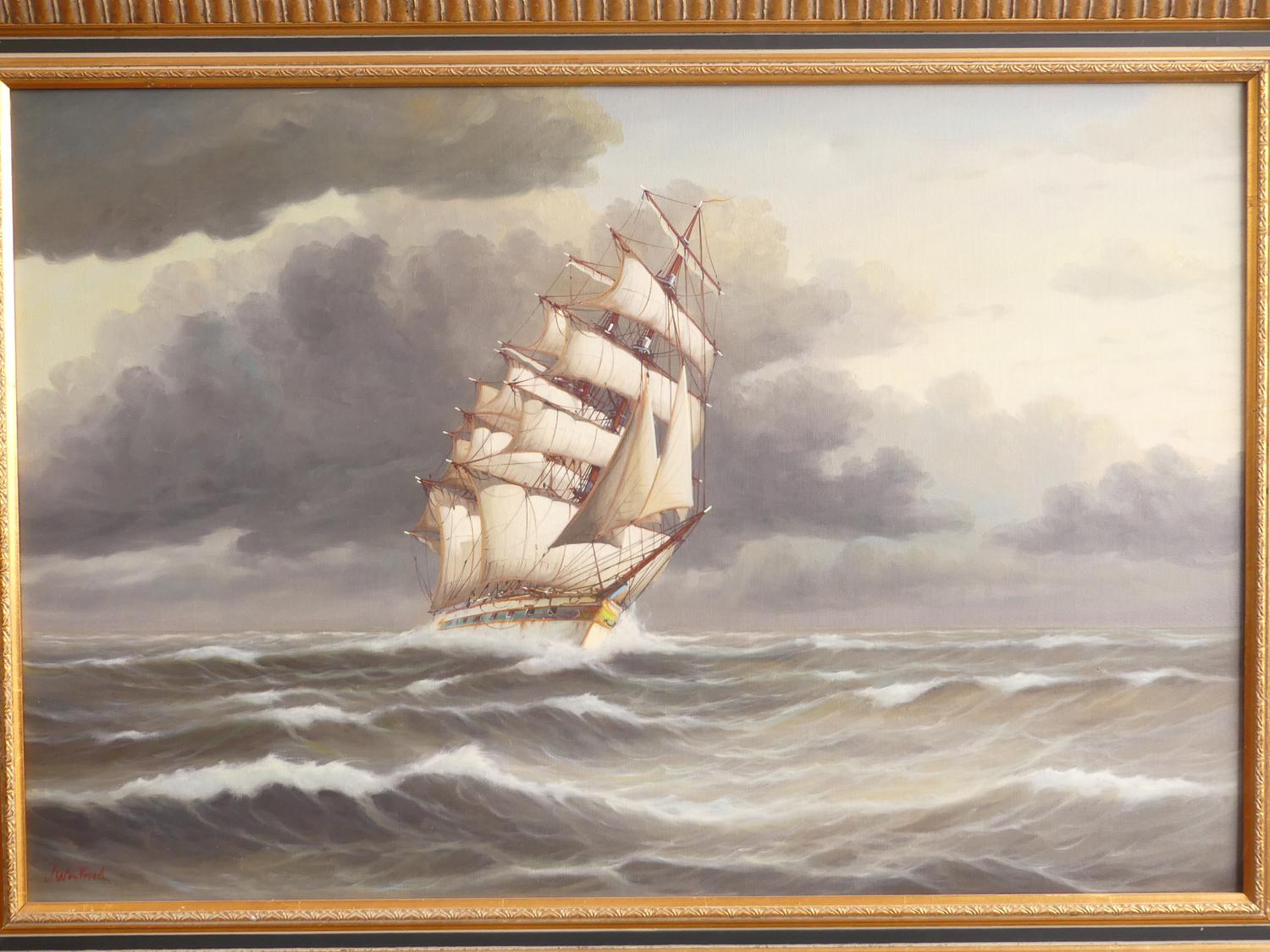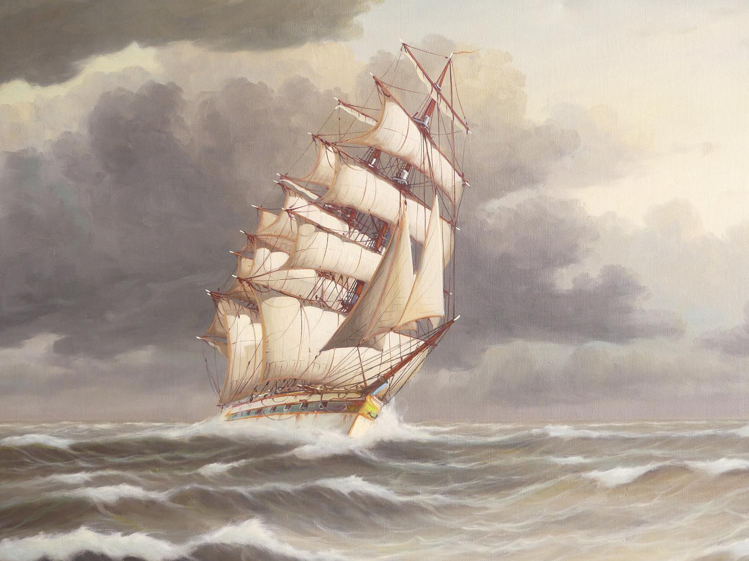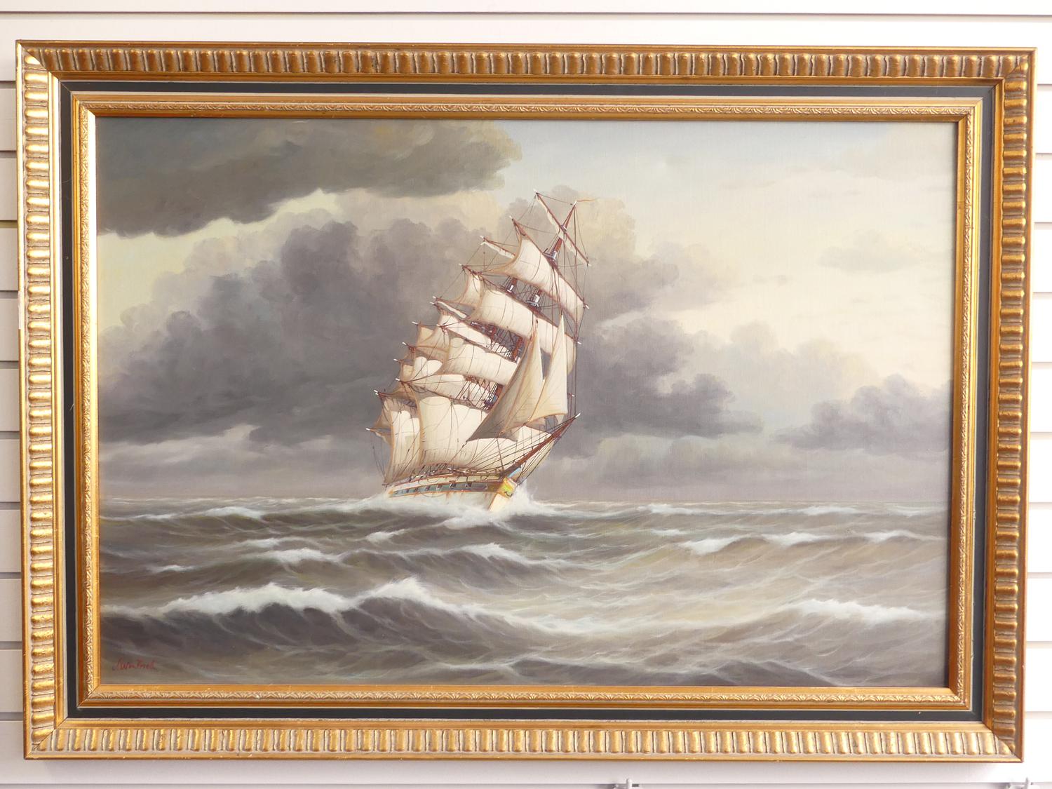 j. wm. fried, oil on canvas, 24" x 36", tall ship"