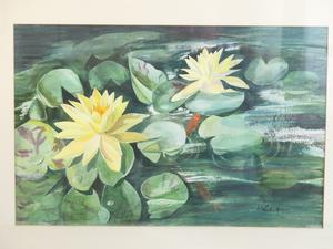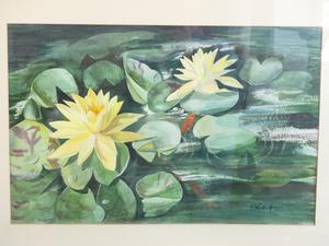 joan ward-harris, watercolour, 13" x 20", "water lily"