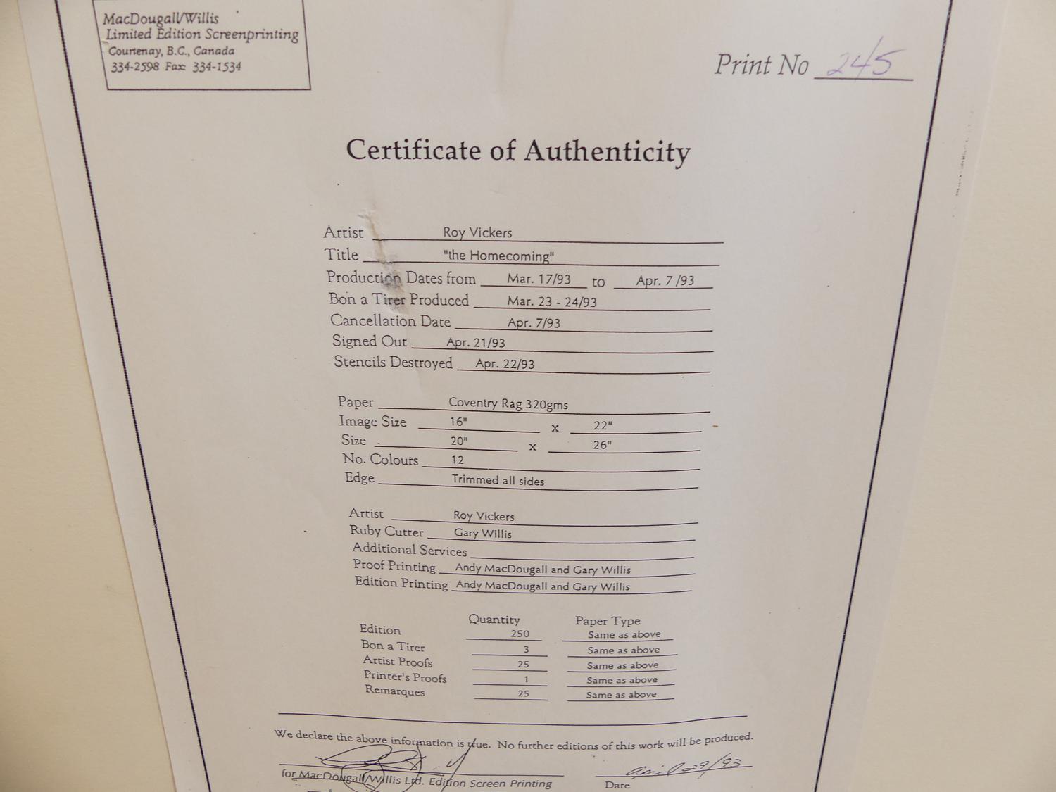 roy henry vickers (b.1946), limited edition print, #245/250, d.1994, 16" x 22", "the homecoming"