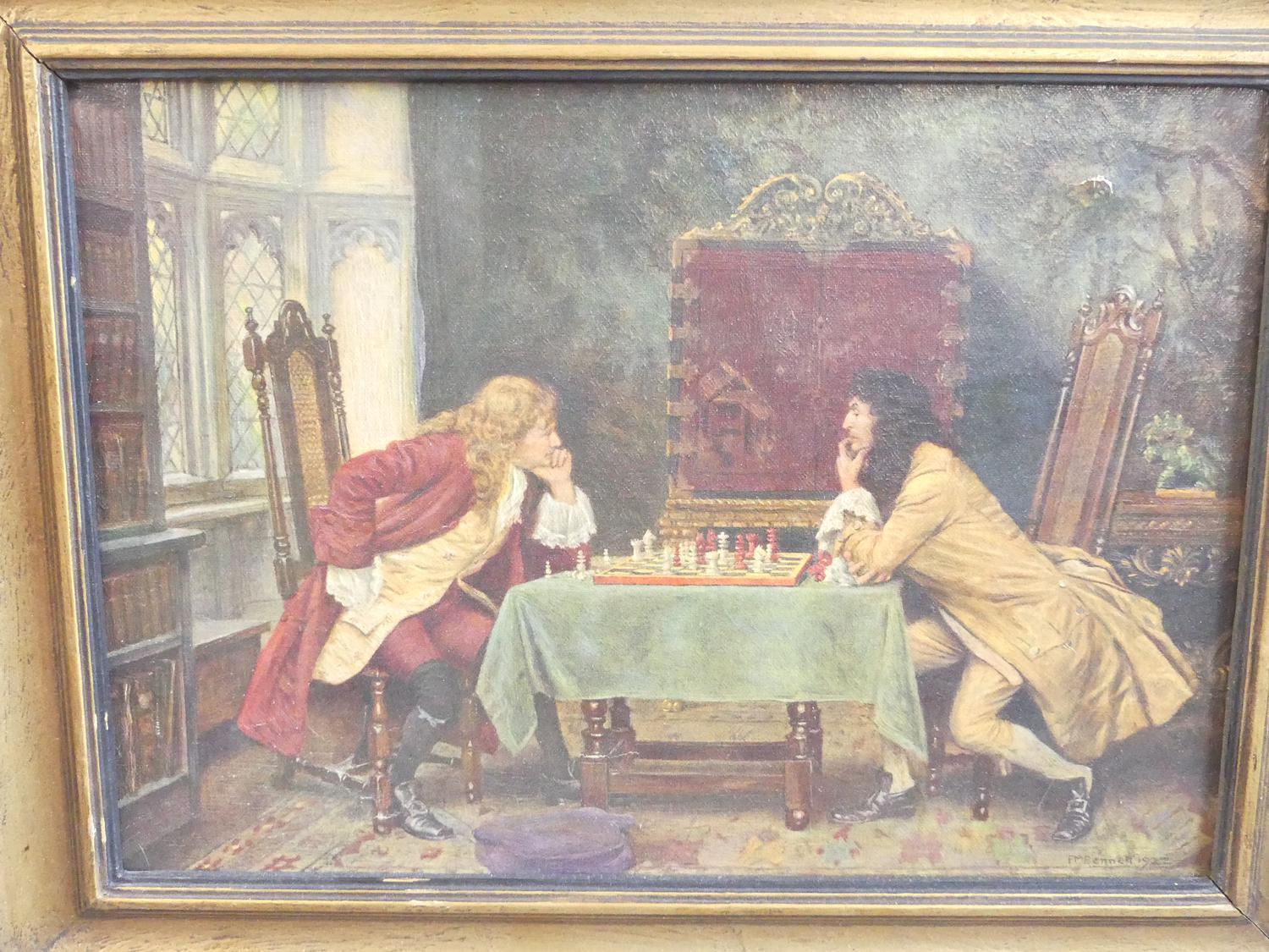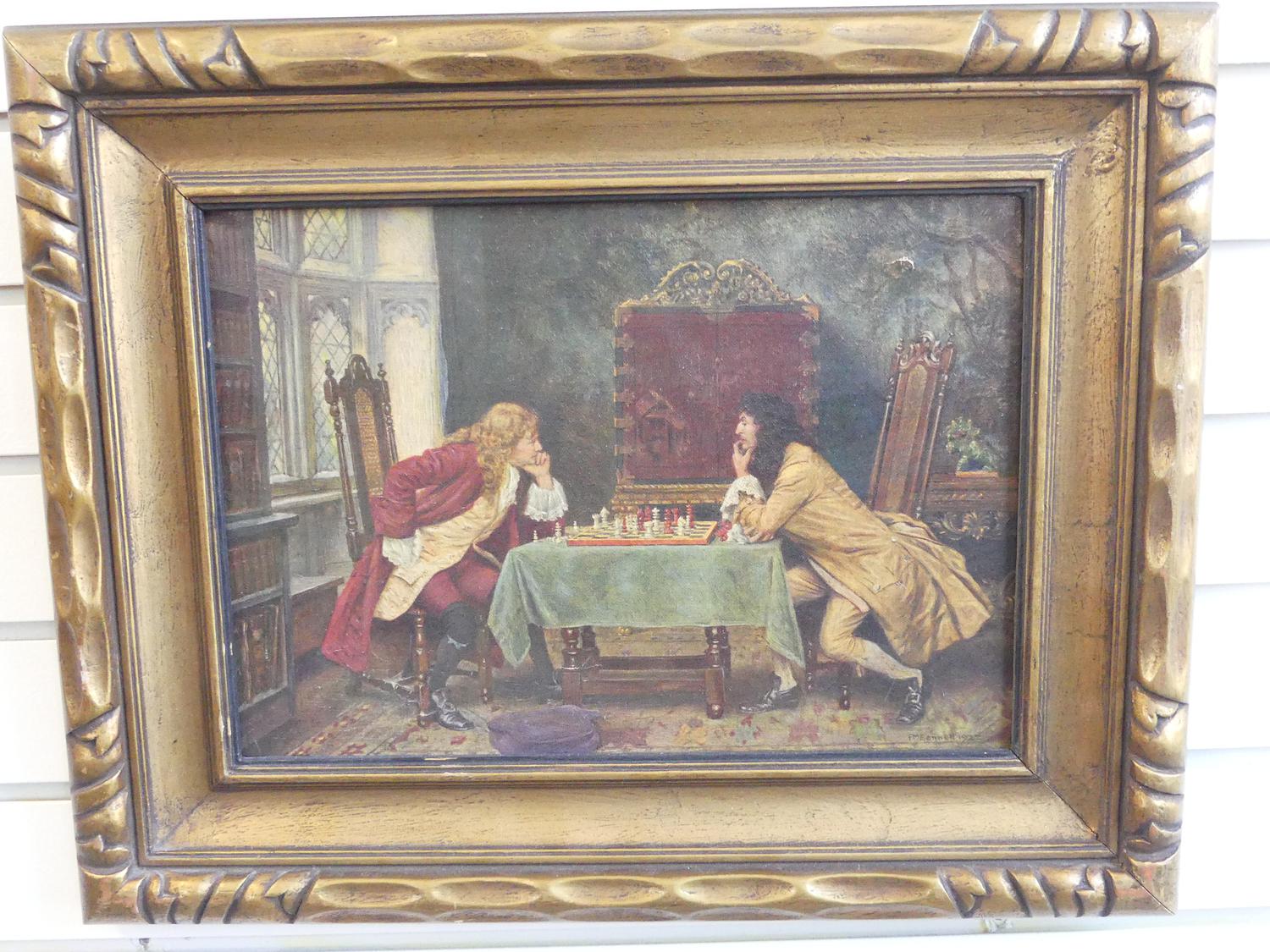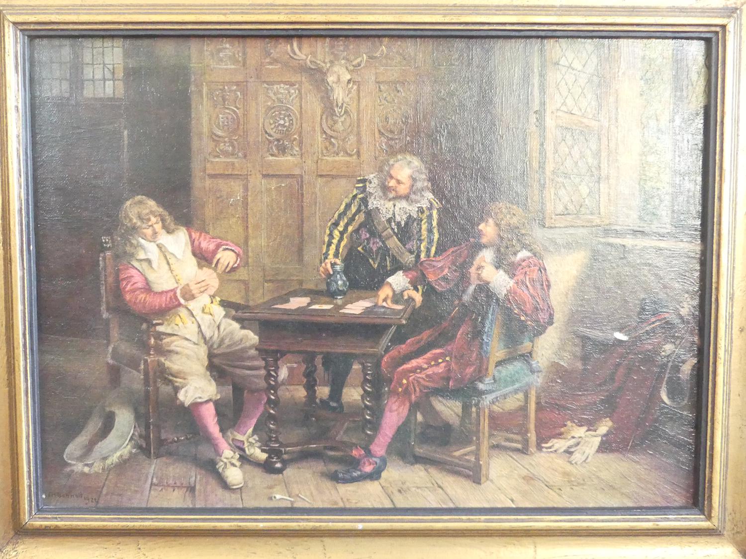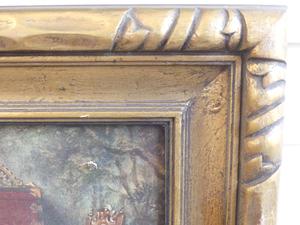 pair of gilt framed canvas prints of 17th century interior scenes, overall 15 1/2" x 19"