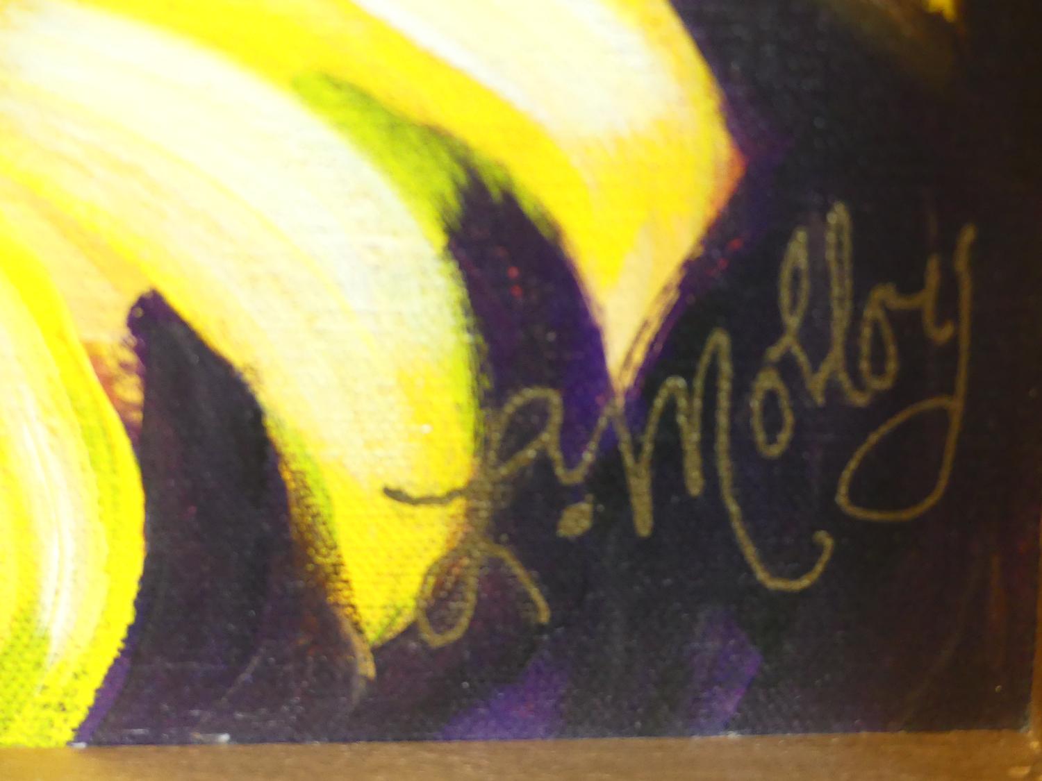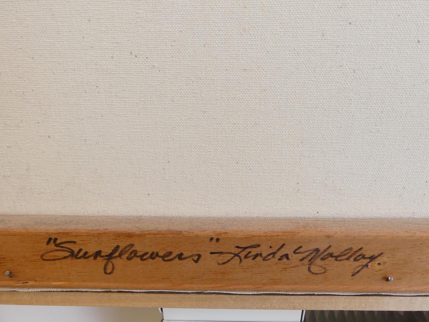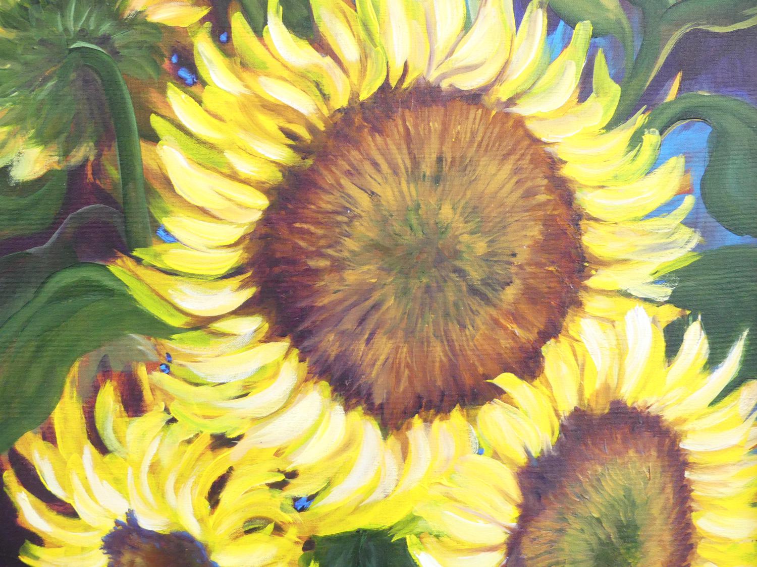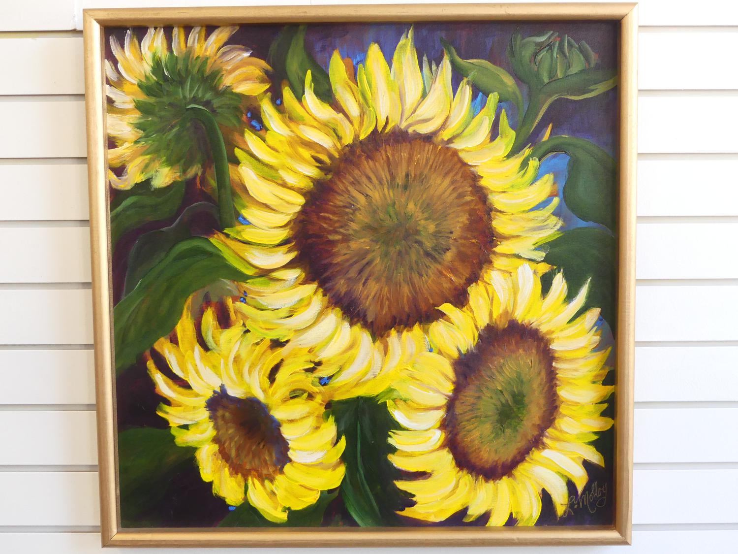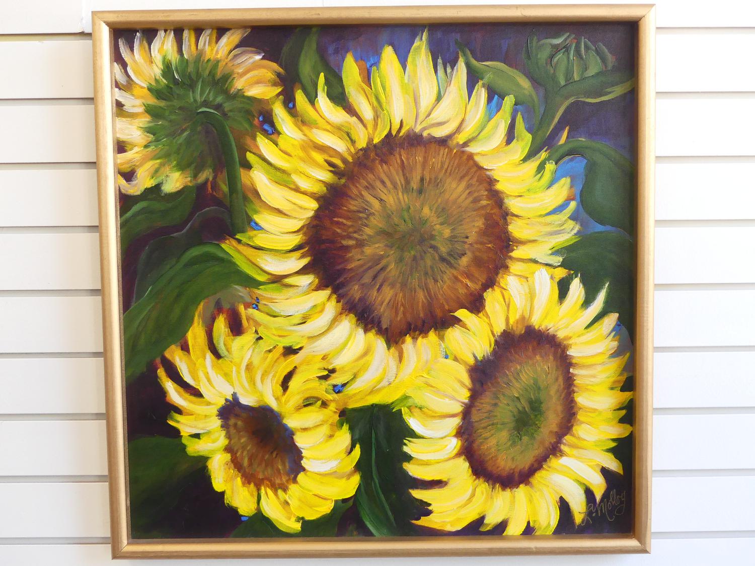 linda molloy, oil on canvas, 24" x 24", "sunflowers"