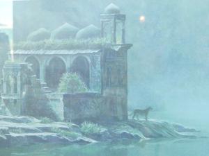 robert mclellan bateman (b.1930), limited edition print #389/950, 17" x 33", "hindu temple - tiger"