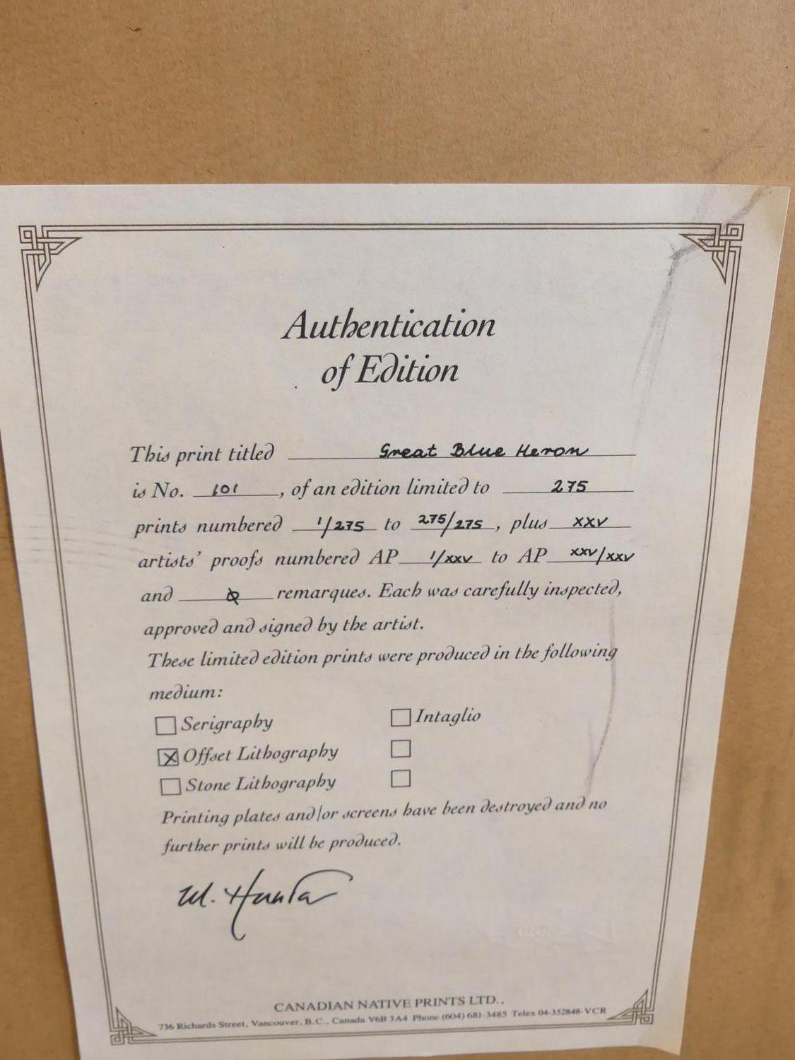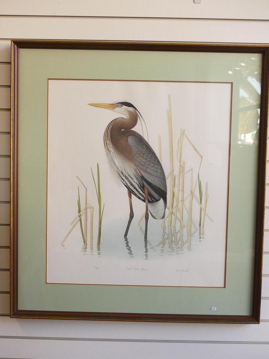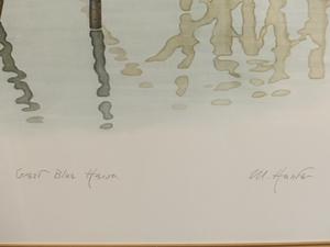 michael hunter, limited edition print #101/275, 26" x 23", "great blue heron"