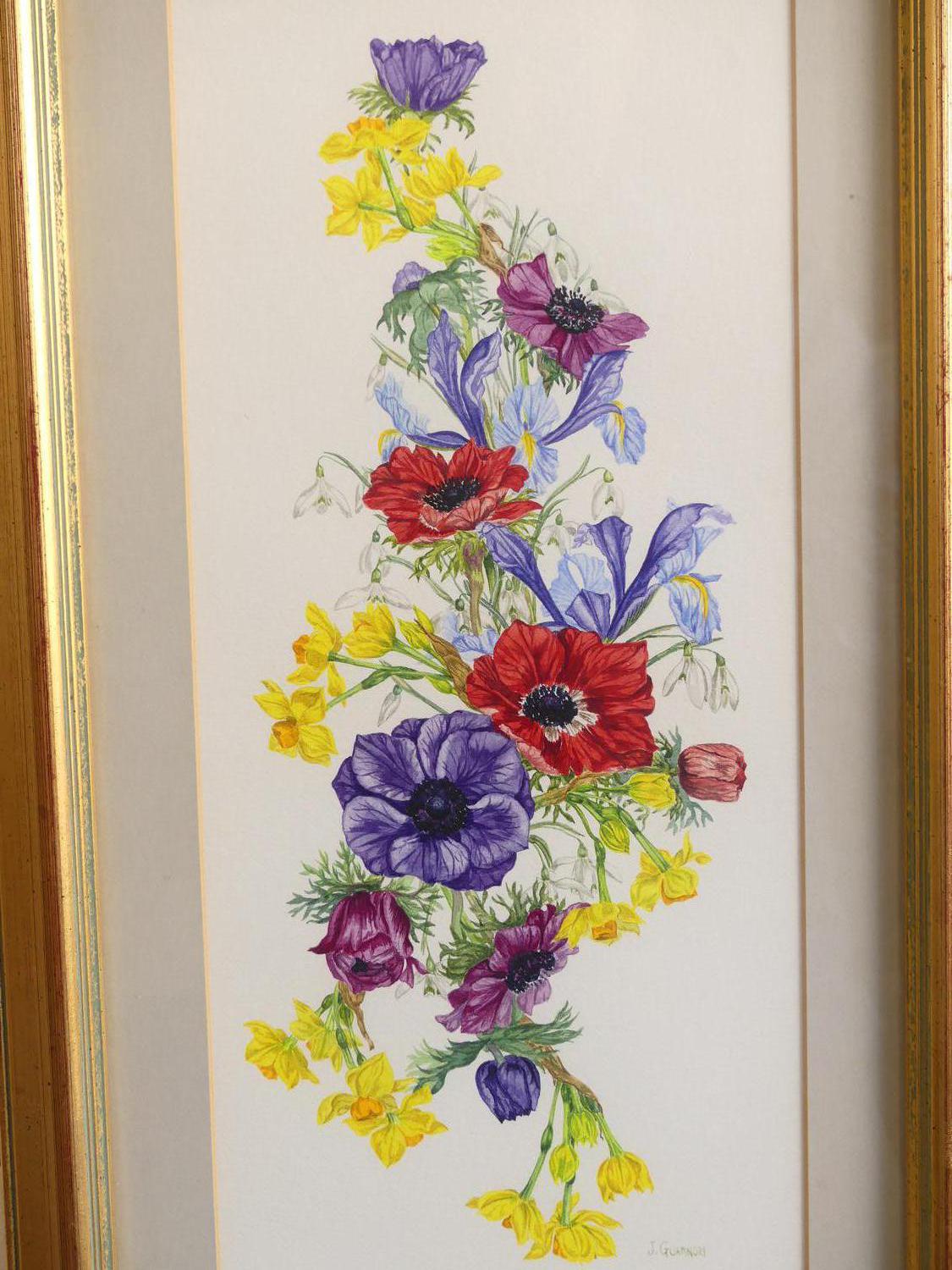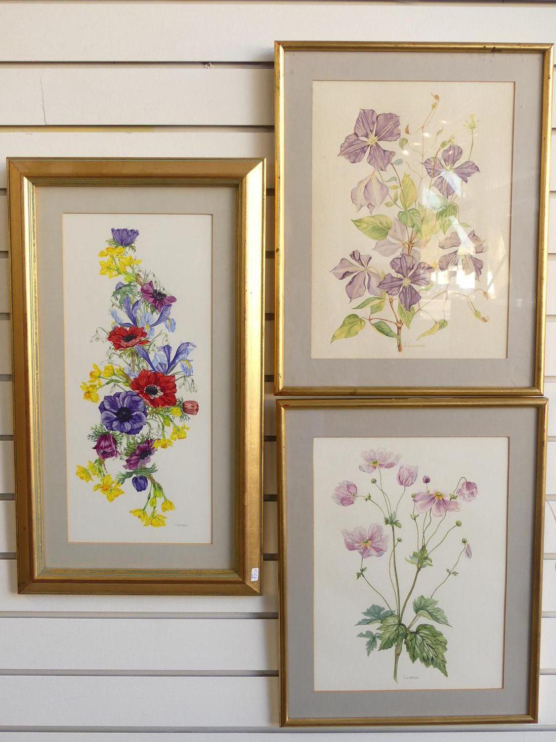 j. guarnori, three watercolour, 17" x 8" and smaller, "floral studies"