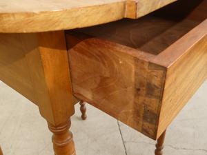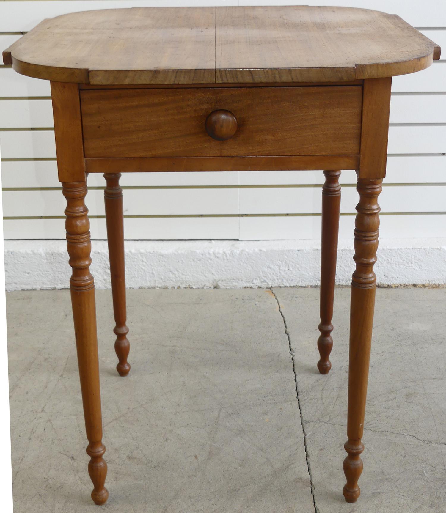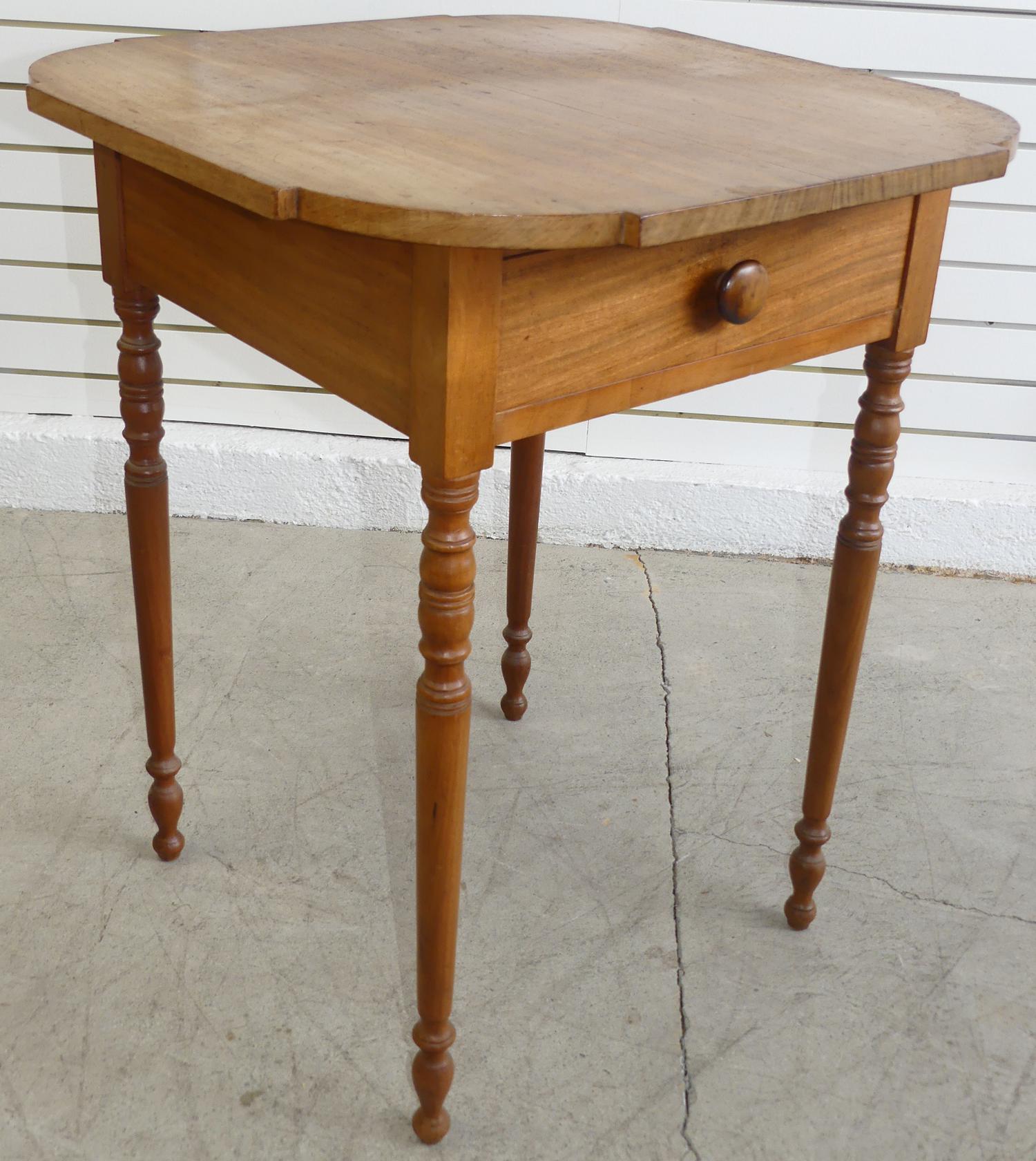 19th century mahogany single drawer work table with turned legs, 29" x 24" x 24"