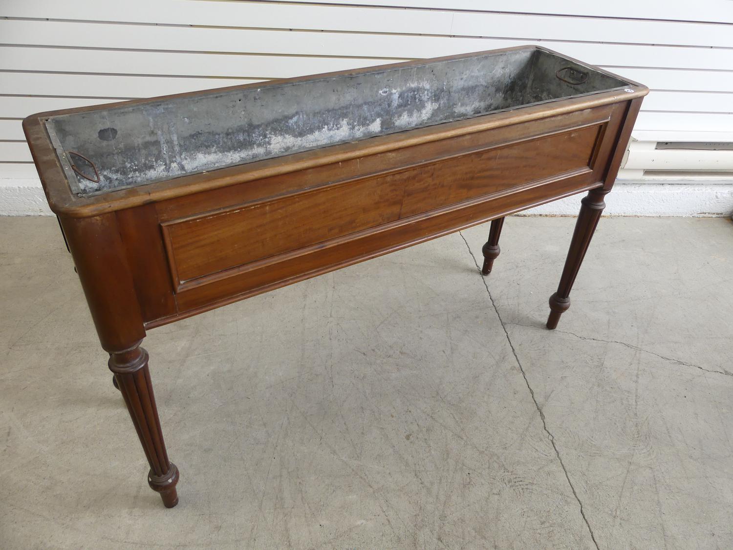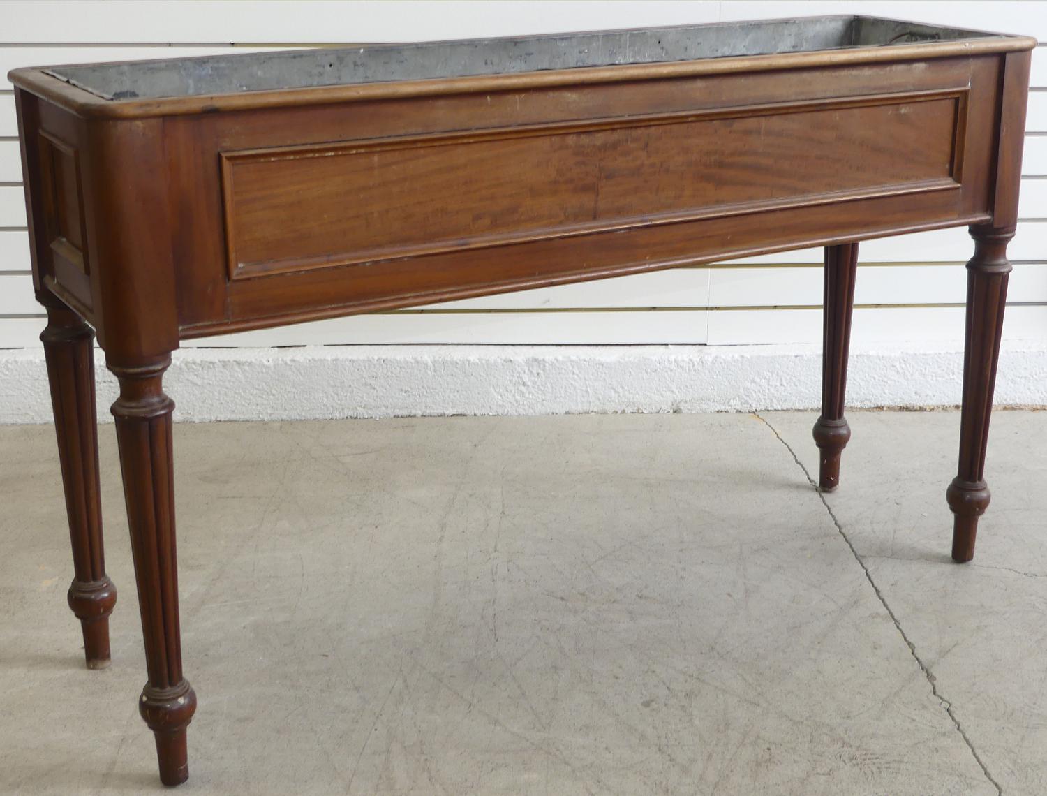 late 19th century mahogany planter stand with turned tapering fluted legs, 28" x 46 1/2" x 14 1/2"