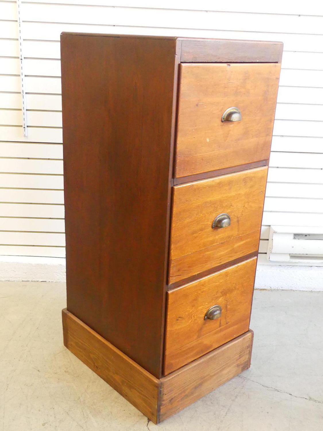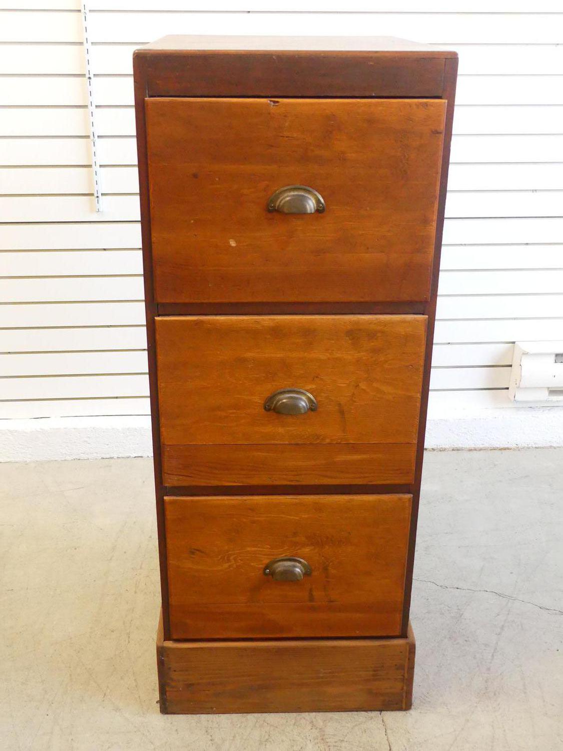 stained three drawer filing cabinet, mid 20th century, 47" x 18" x 22"