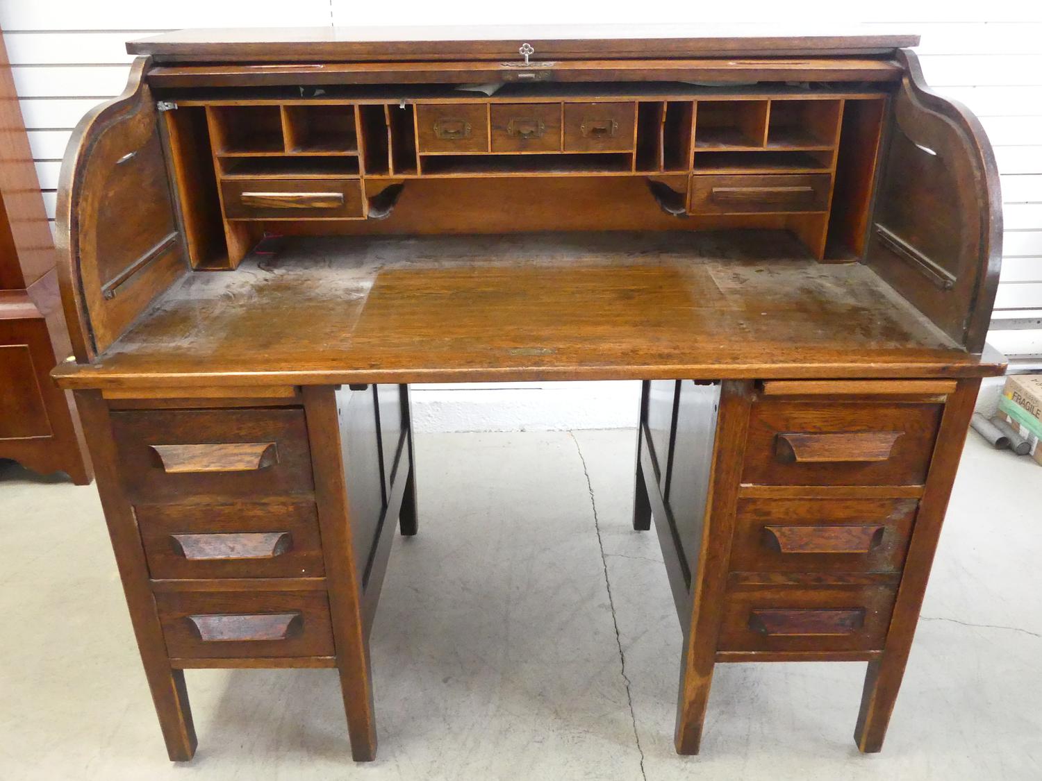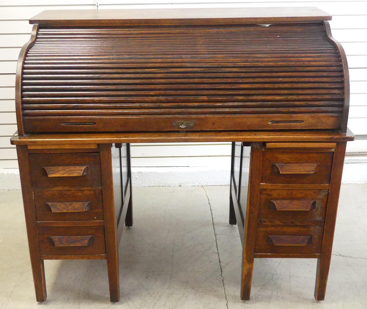 oak roll top desk, early 20th century, 44 1/2" x 50" x 30"