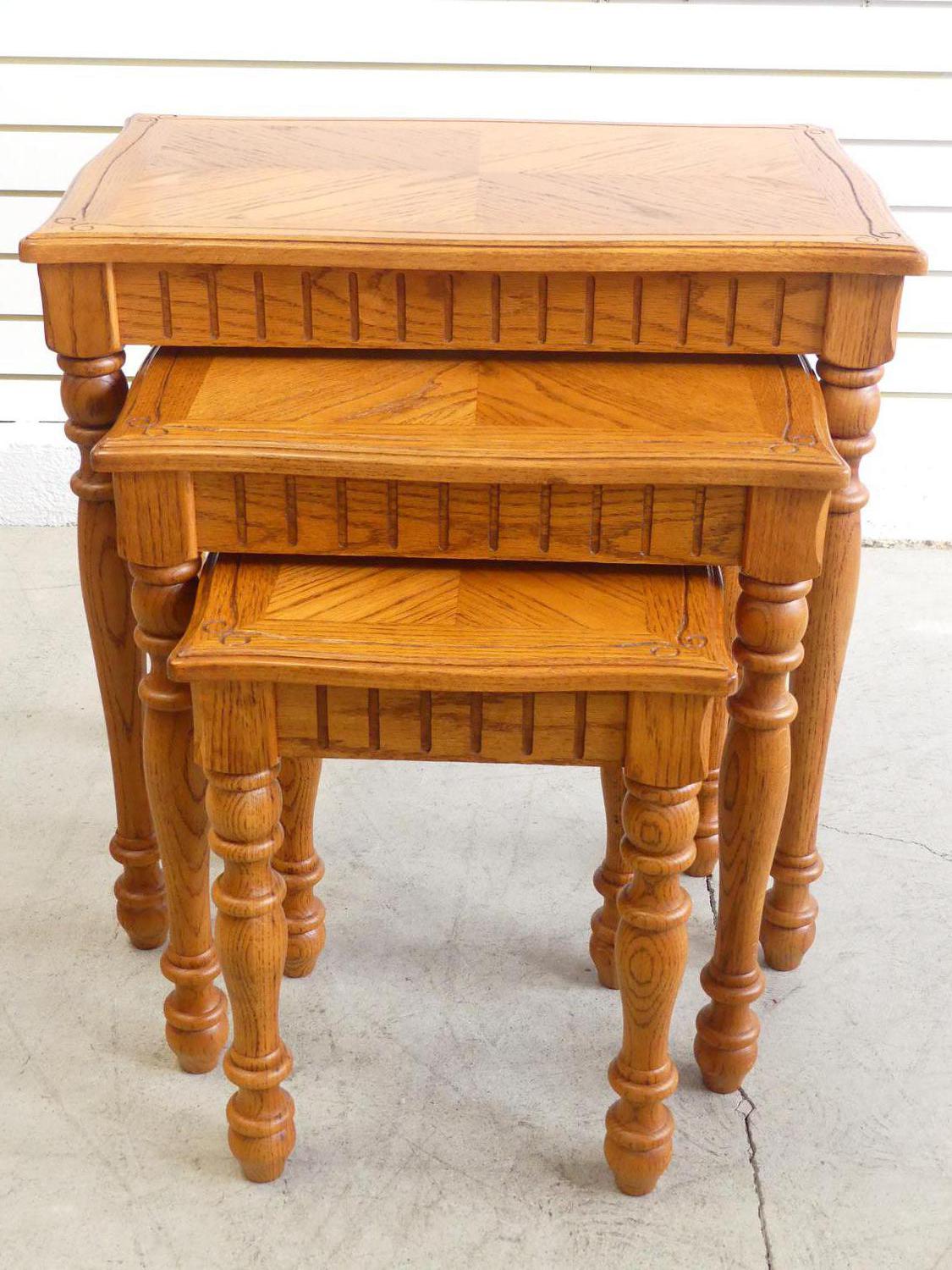 oak nest of three tables, late 20th century, 24" x 24" x 16"