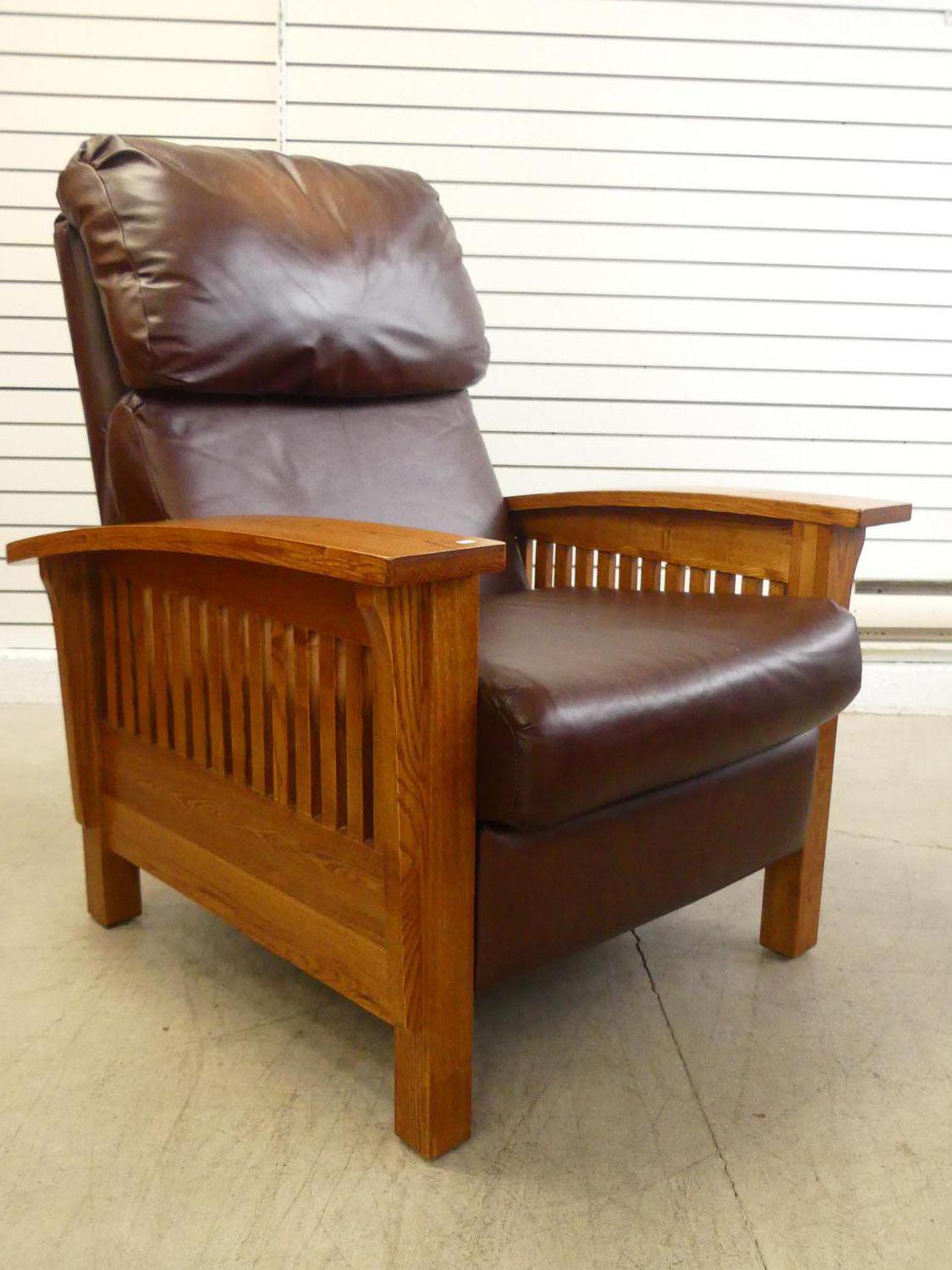 arts & crafts style oak reclining armchair, 21st century, 42" x 34" x 36"