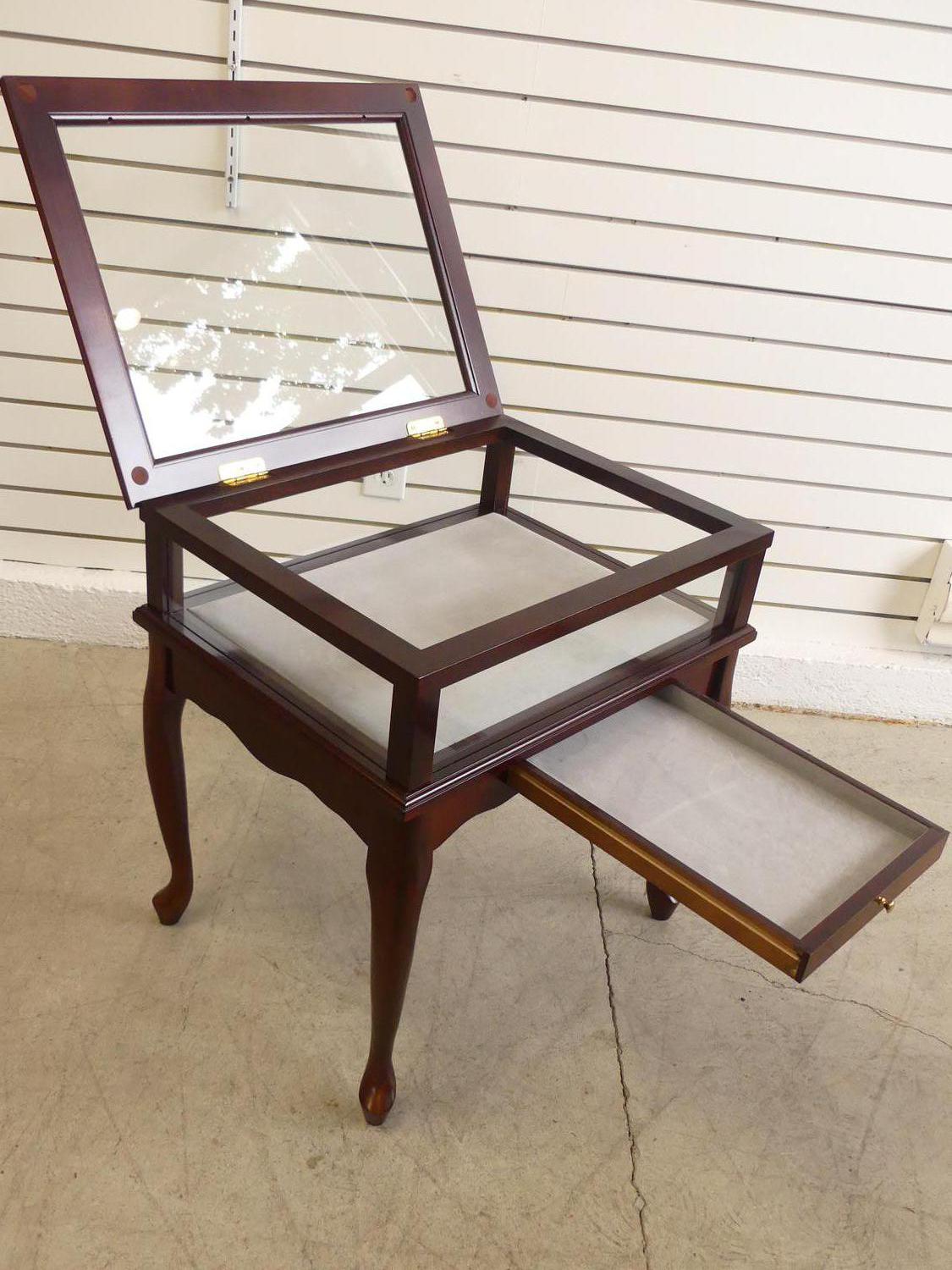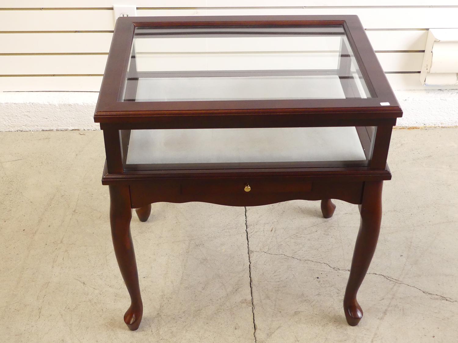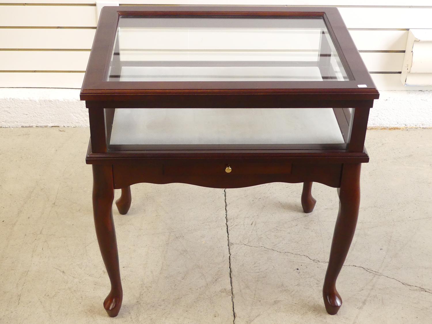 bombay furniture co. mahogany finish curio table, 24" x 22" x 17"
