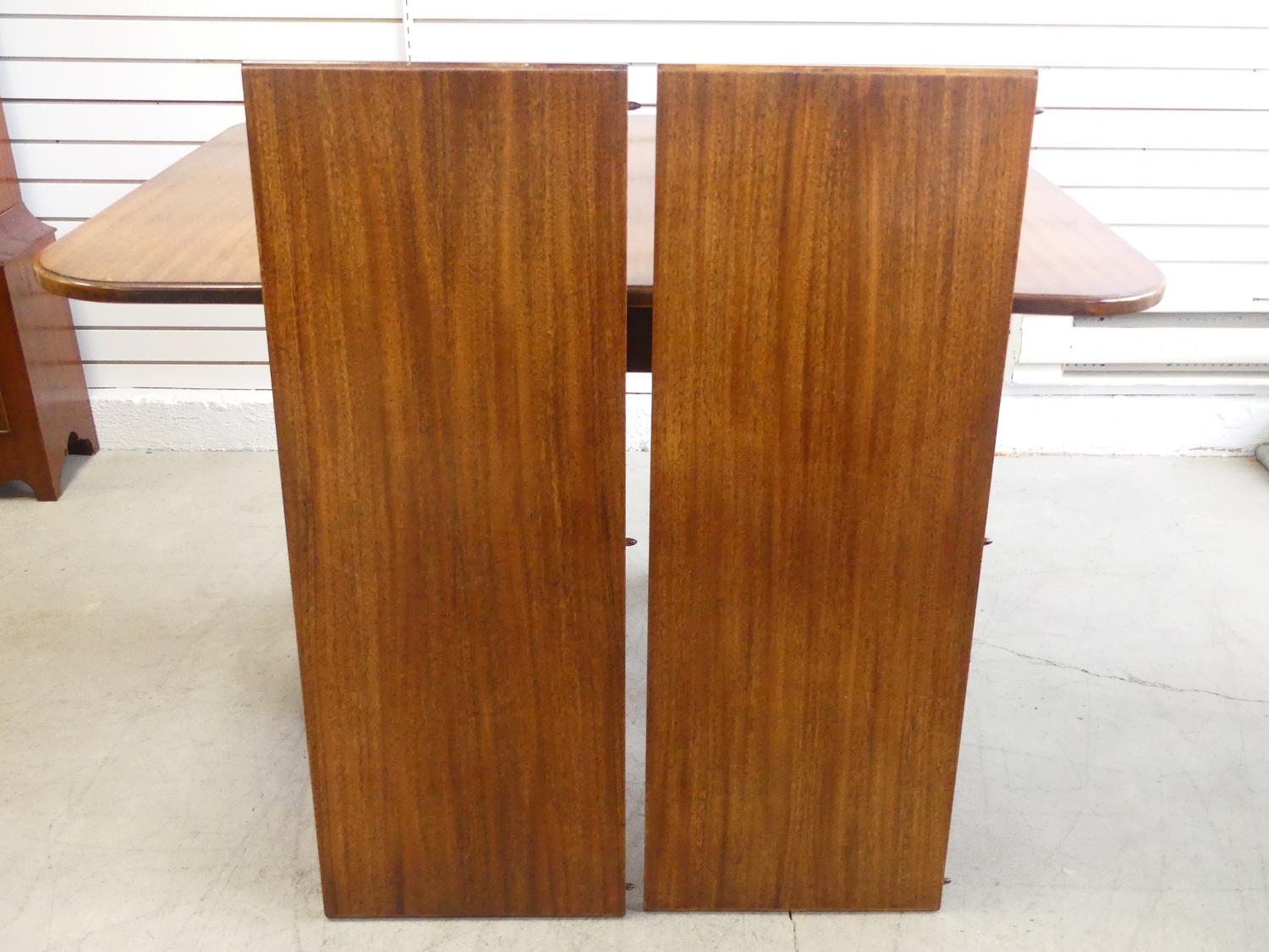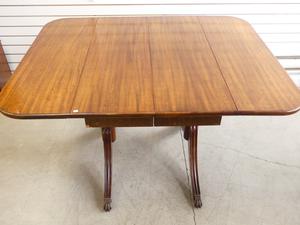 duncan phyfe style mahogany drop leaf table with two 14" extension leaves, 29 1/2" x 48" x 38"