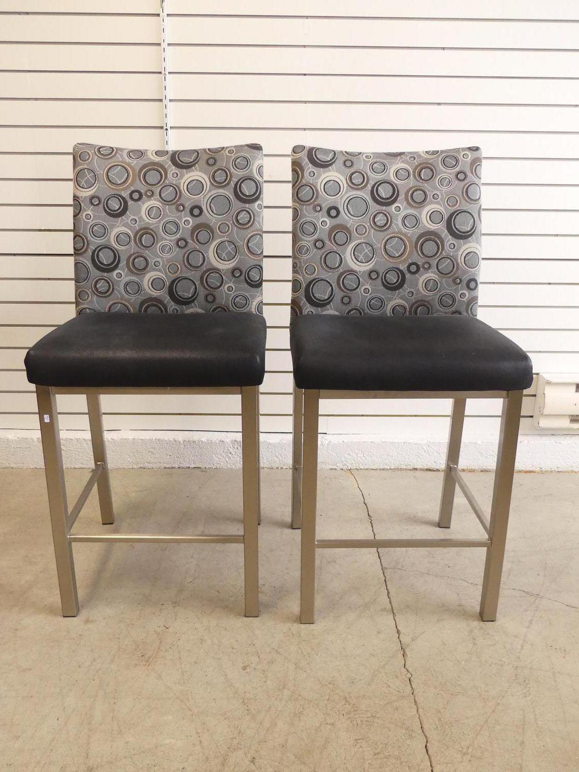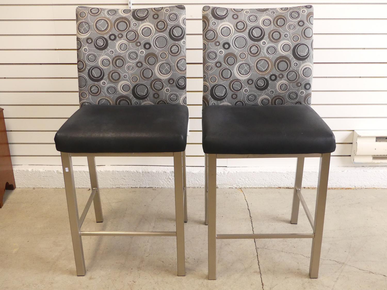 pair of contemporary upholstered bar stools, 41" x 19" x 18"