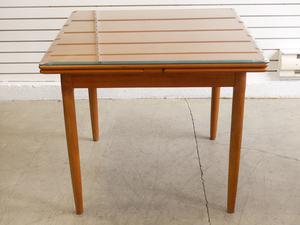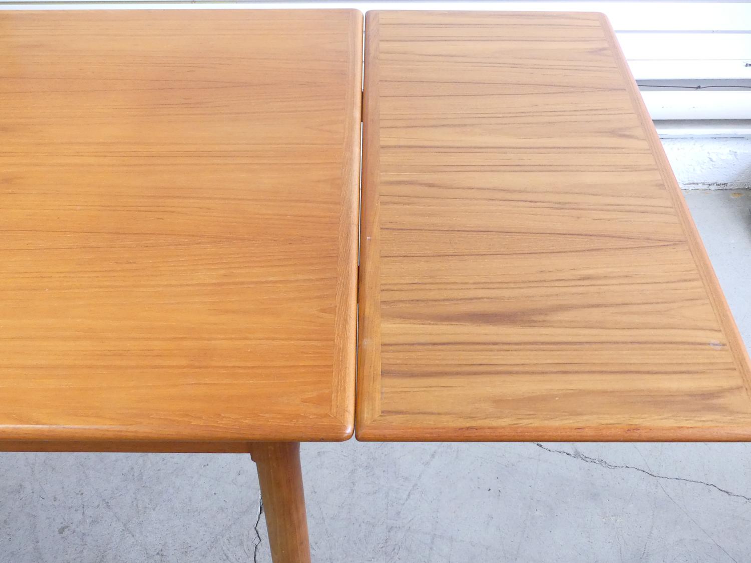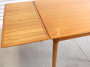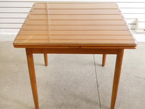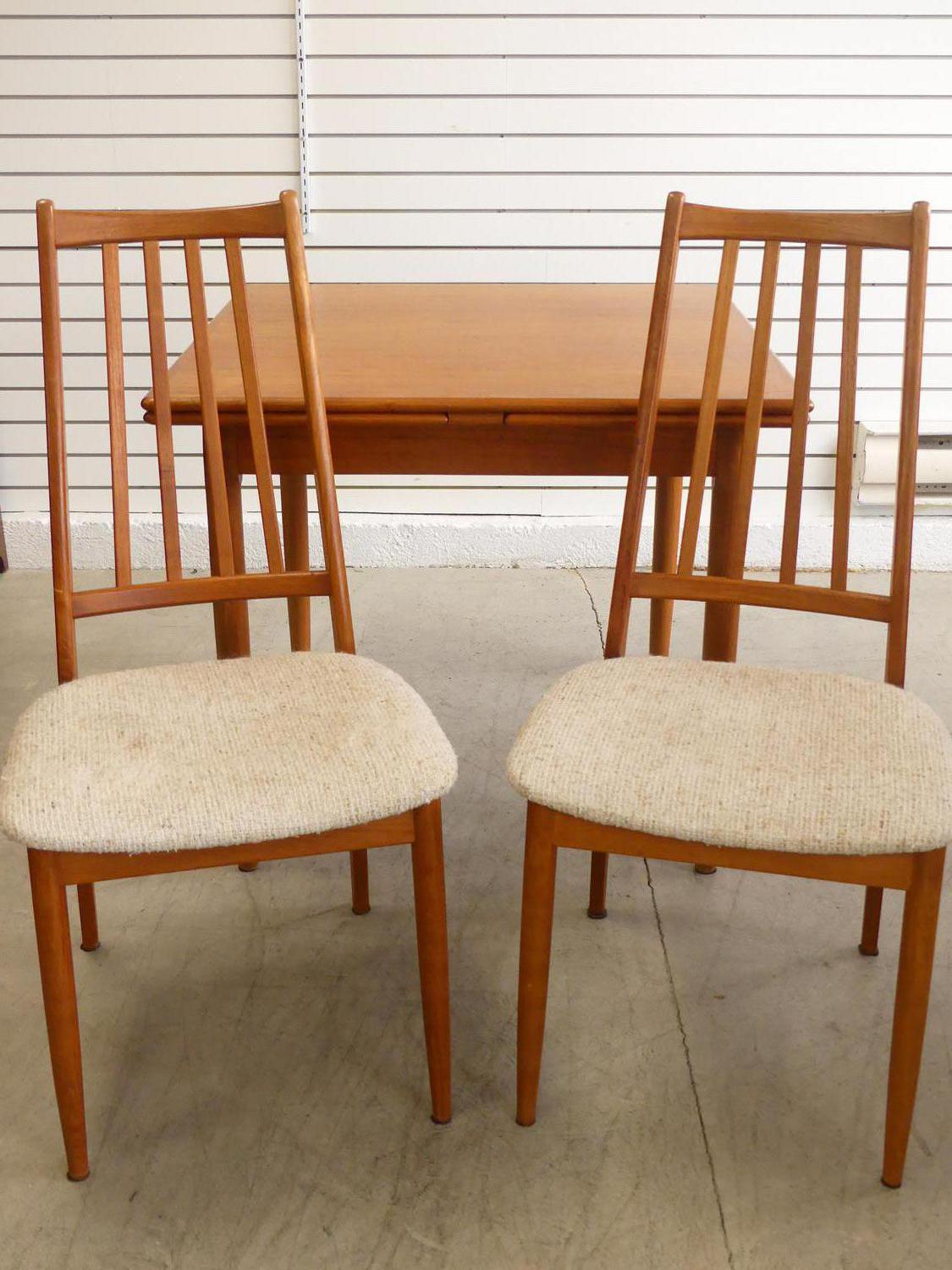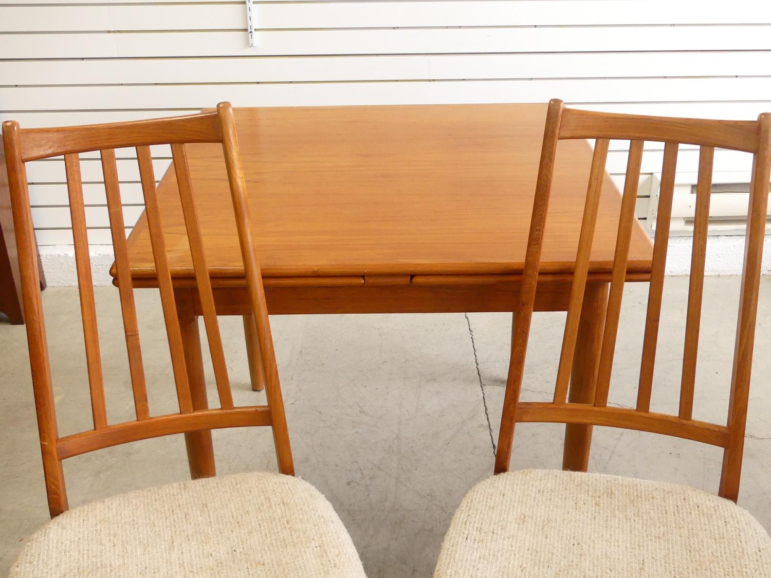 teak square draw leaf table with two chairs