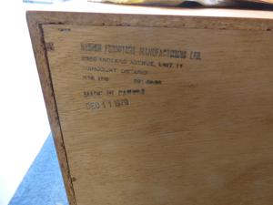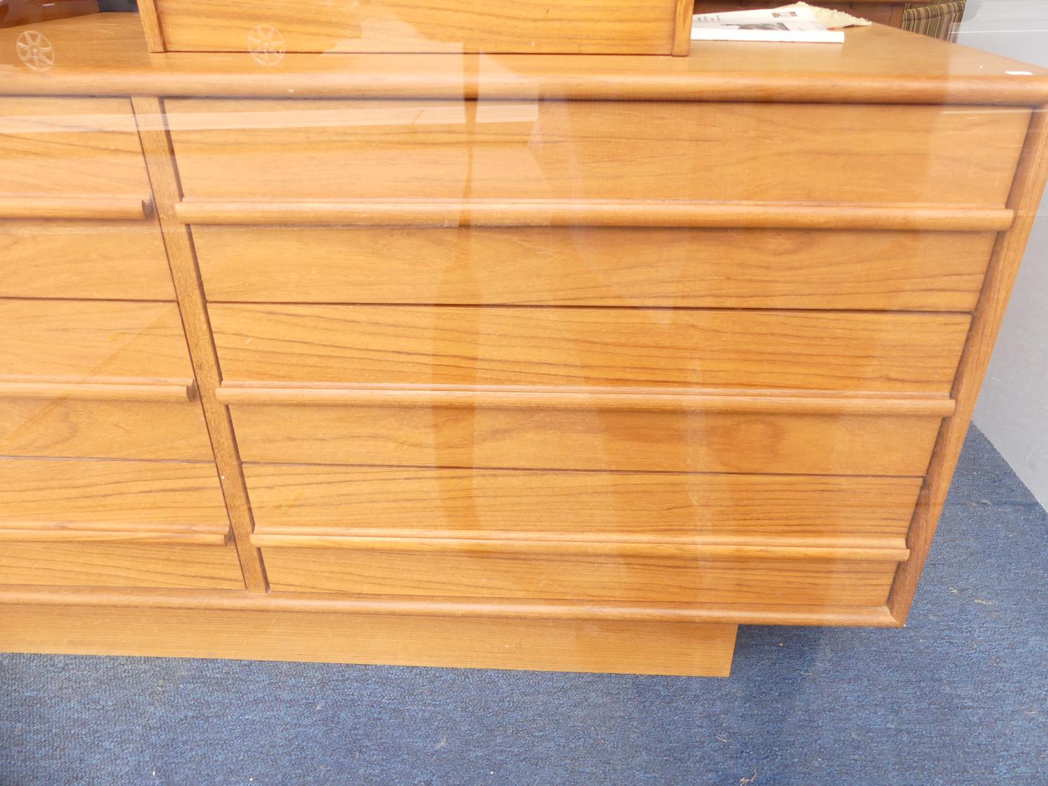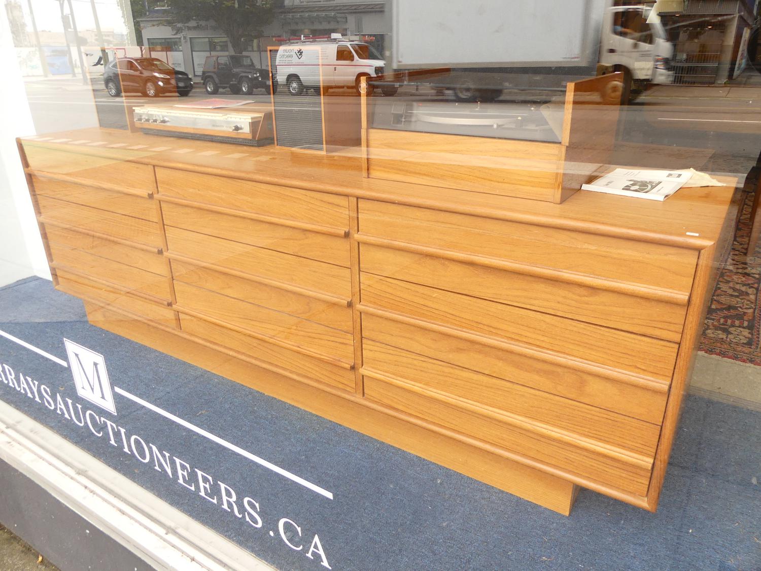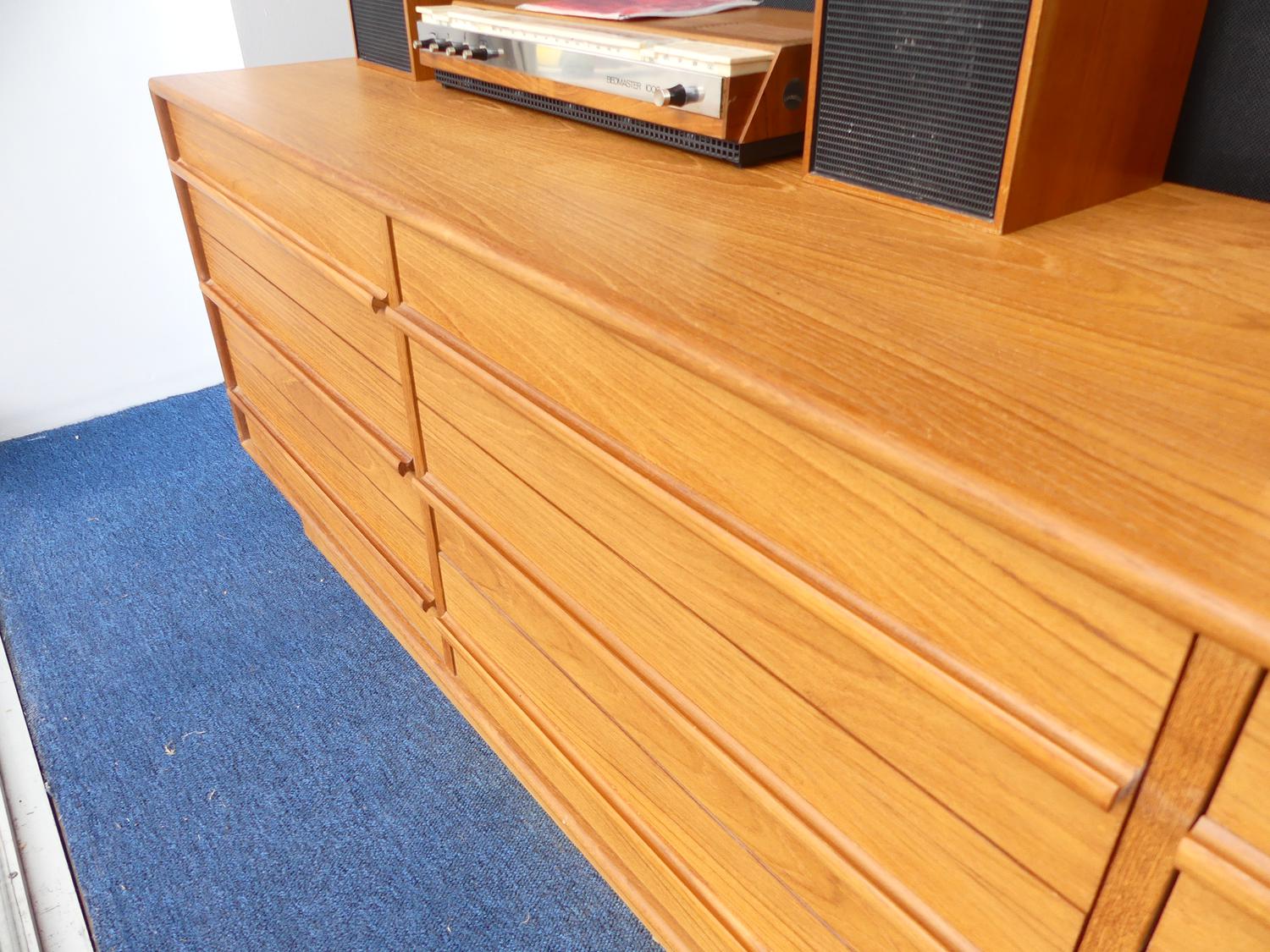 teak chest of drawers, c.1979, 24 1/2" x 75" x 18 1/2"