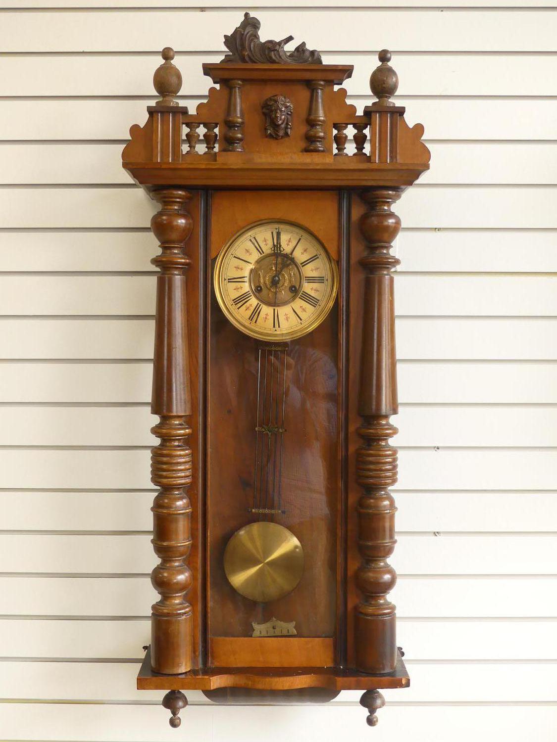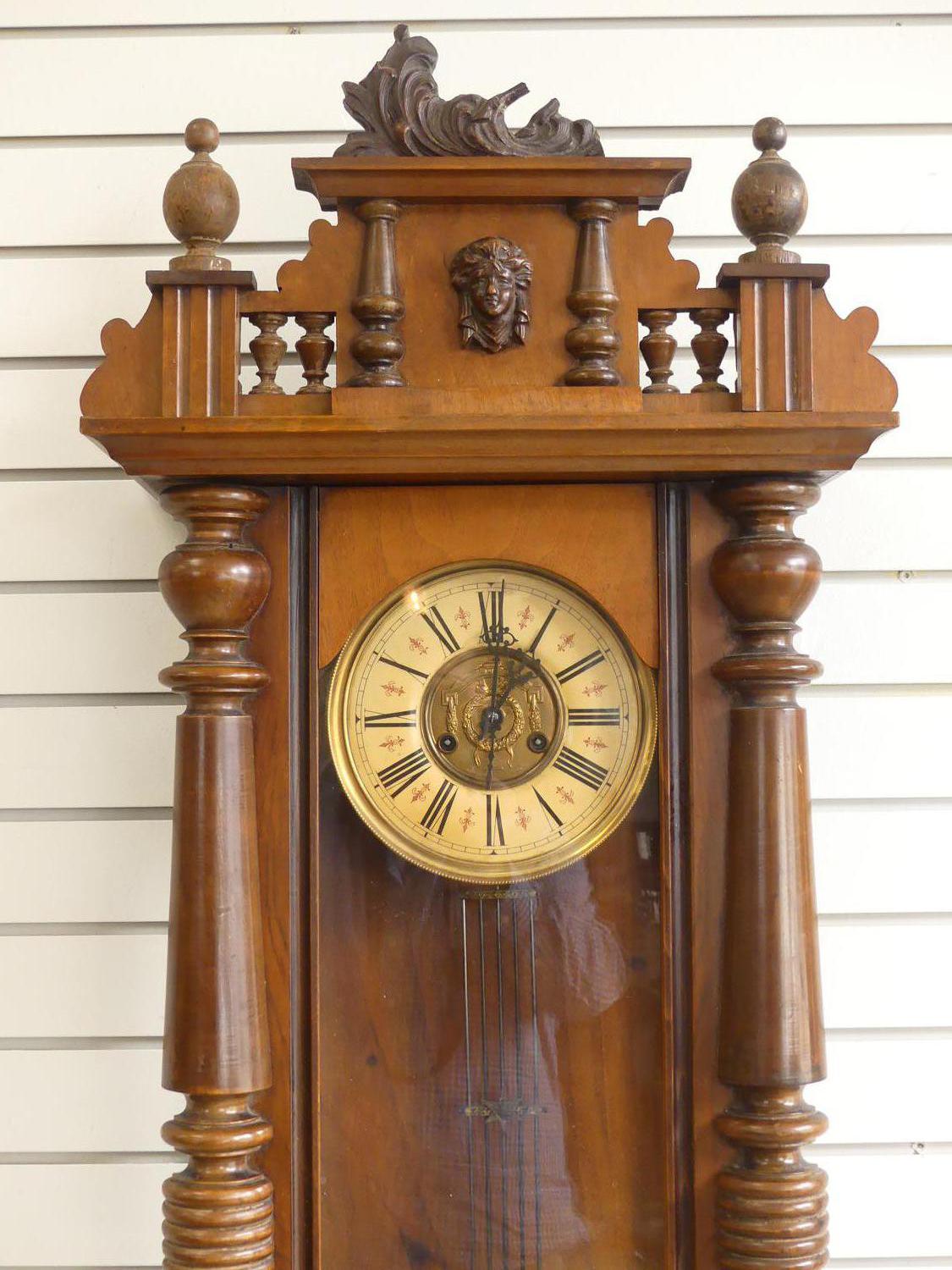 19th century vienna regulator wall clock, 46" x 19" x 8"