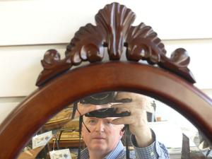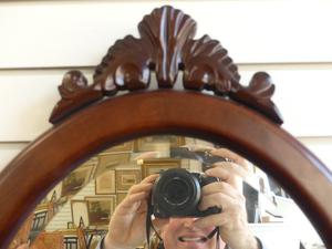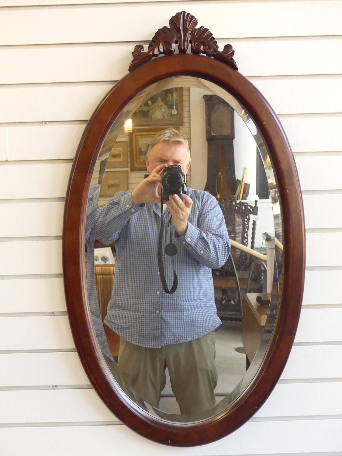 mahogany framed bevelled oval mirror by bombay furniture co., 33 1/2" x 19"