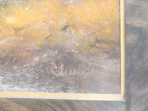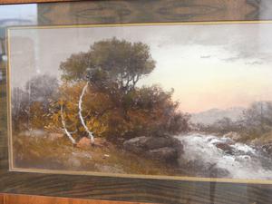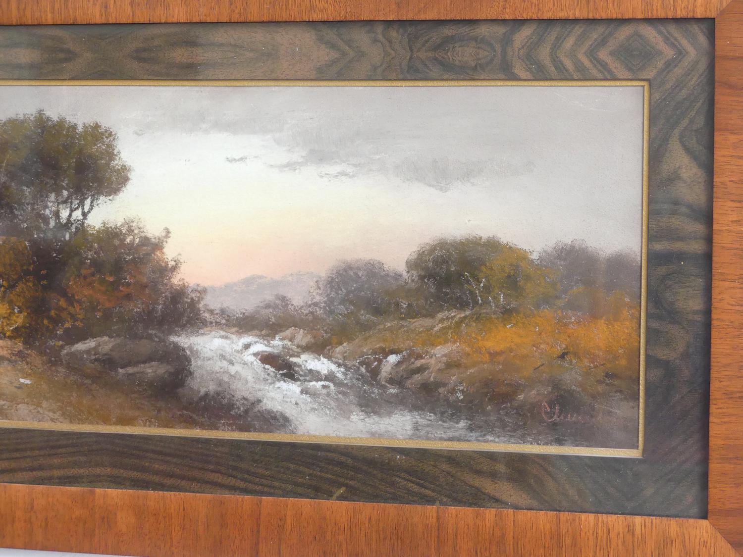 william henry chandler (1854-1928), pastel, 8" x 20", "wooden landscape with river"